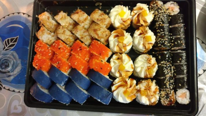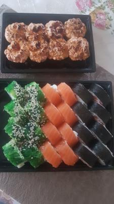 Спасибо, суши вкусные. Выбрала сет "Кензо" (750 г, 32 шт,) с доставкой. Все привезли вовремя. Отличные суши. Попупаю 3-ий раз.  Приготовлено здорово, сами суши по размеру больше, чем в магазине!