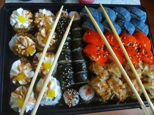 - На 1 суши-сет прилагается не более 4 комплектов палочек