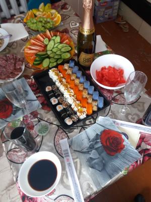 - Внимание! К предзаказу на 31.12 доступны: сет "Новогодний", "Мамины радости", "Макеба", "Ясахи", "Филадельфия", "Каприз", "Игра в кальмара", "Можно всё!", "Мама босс", "Палитра вкуса", "Муж купил", "Биг босс", "Мафия", "Манга", роллы Урамаки, все напитки и гарниры