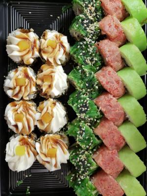 - Внимание! К предзаказу на 31.12 доступны: сет "Новогодний", "Мамины радости", "Макеба", "Ясахи", "Филадельфия", "Каприз", "Игра в кальмара", "Можно всё!", "Мама босс", "Палитра вкуса", "Муж купил", "Биг босс", "Мафия", "Манга", роллы Урамаки, все напитки и гарниры