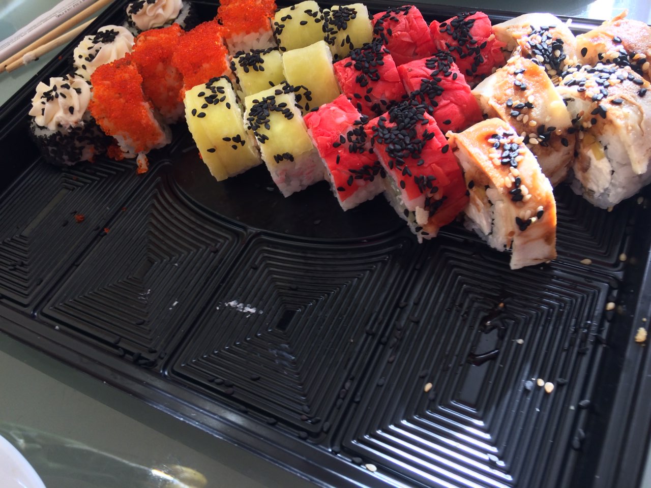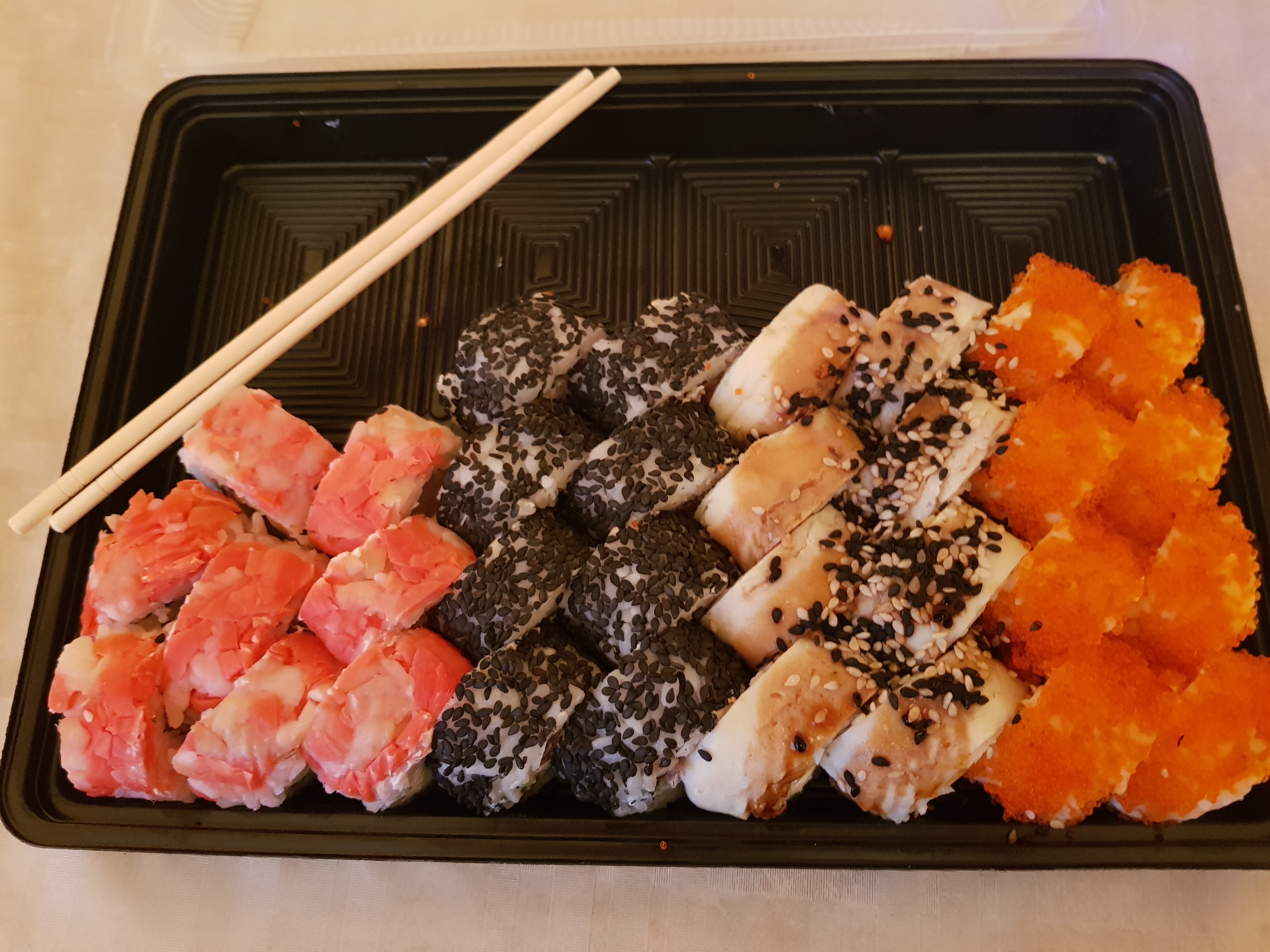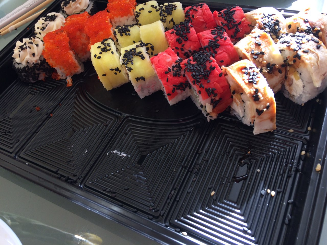 - На 1 суши-сет прилагается не более 4 комплектов палочек
