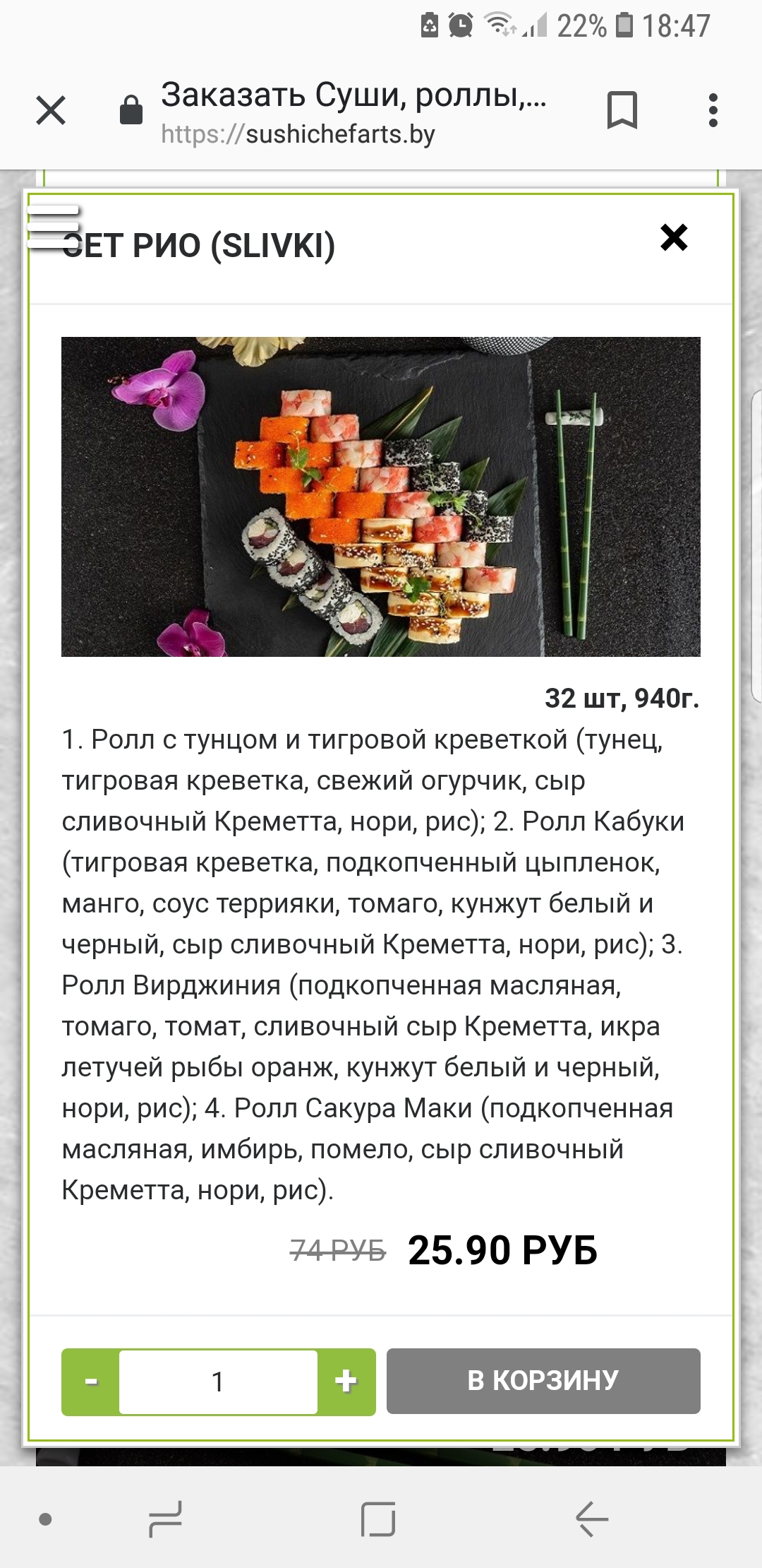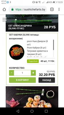 - суши-сеты: от 22 р. от 46 р.