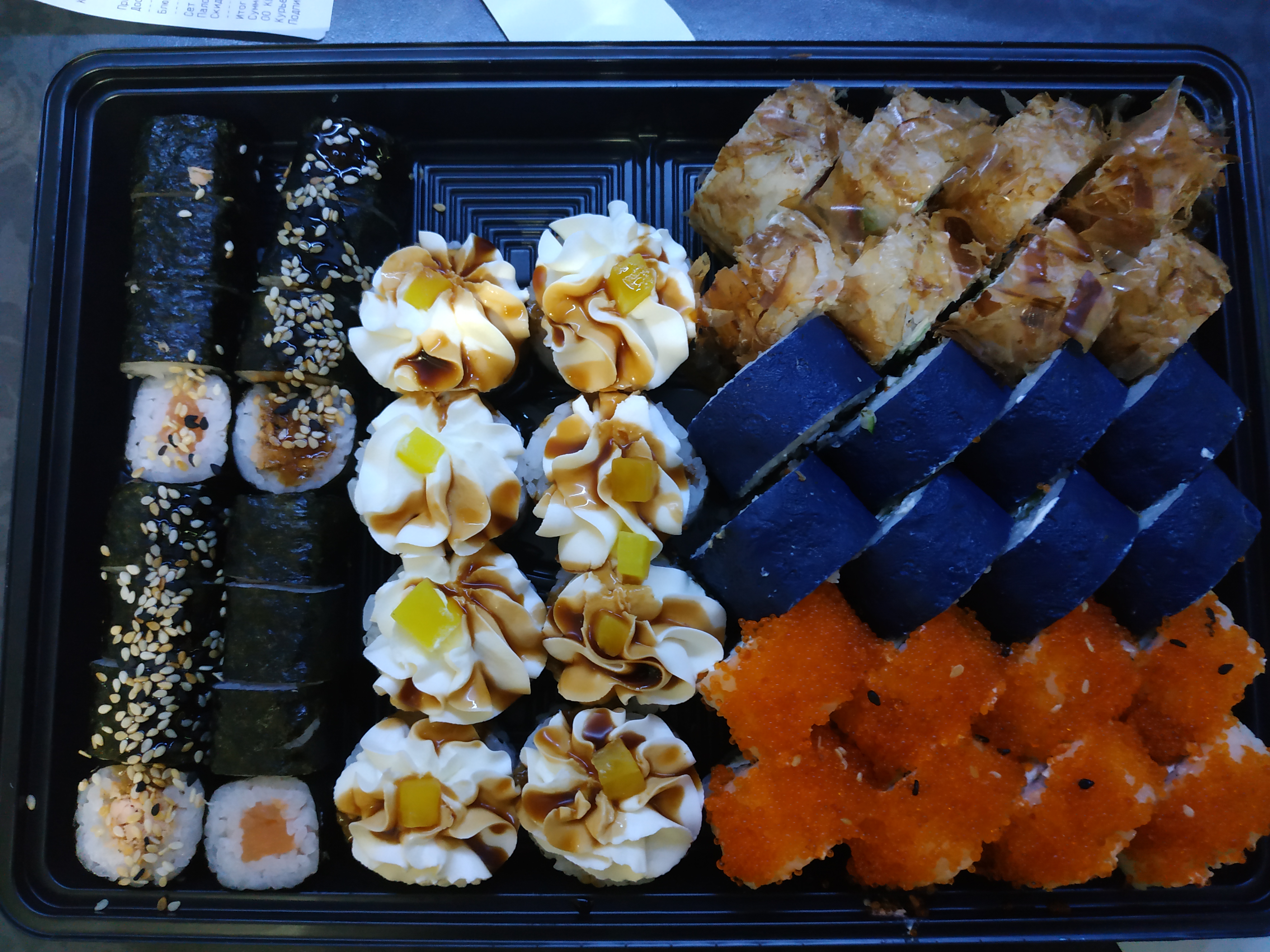 - Внимание! К предзаказу на 31.12 доступны: сет "Новогодний", "Мамины радости", "Макеба", "Ясахи", "Филадельфия", "Каприз", "Игра в кальмара", "Можно всё!", "Мама босс", "Палитра вкуса", "Муж купил", "Биг босс", "Мафия", "Манга", роллы Урамаки, все напитки и гарниры