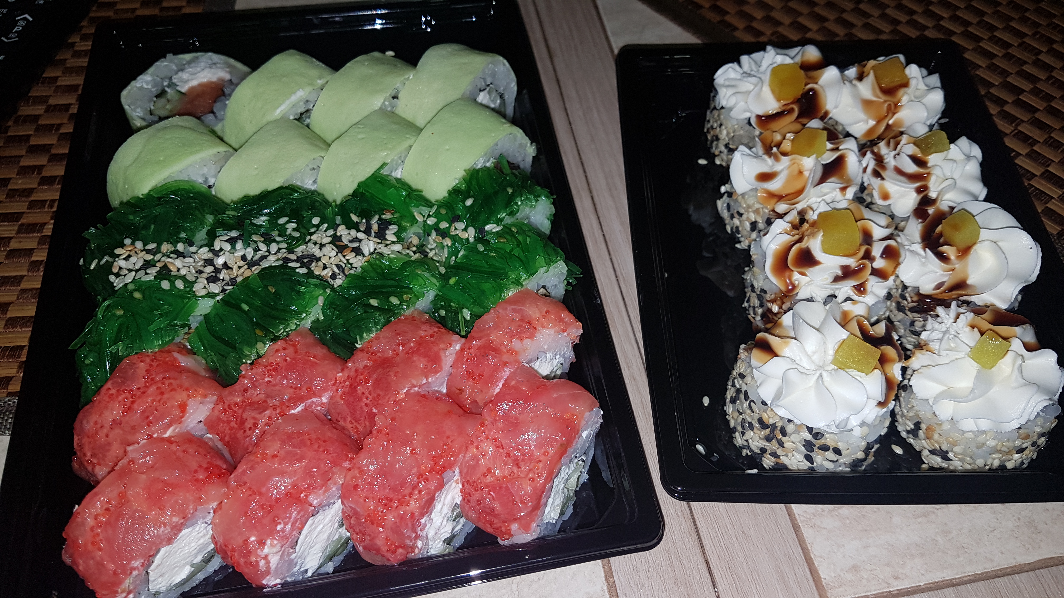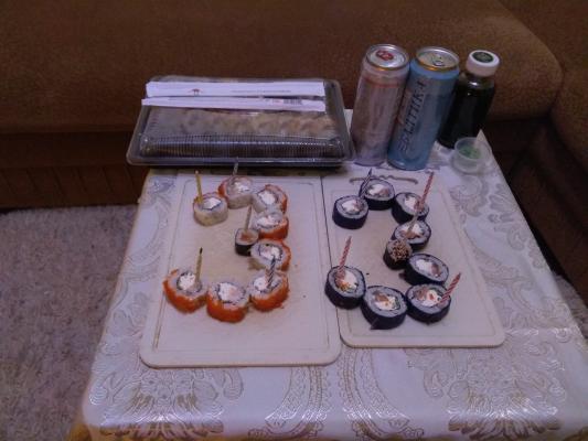 - Внимание! К предзаказу на 31.12 доступны: сет "Новогодний", "Мамины радости", "Макеба", "Ясахи", "Филадельфия", "Каприз", "Игра в кальмара", "Можно всё!", "Мама босс", "Палитра вкуса", "Муж купил", "Биг босс", "Мафия", "Манга", роллы Урамаки, все напитки и гарниры