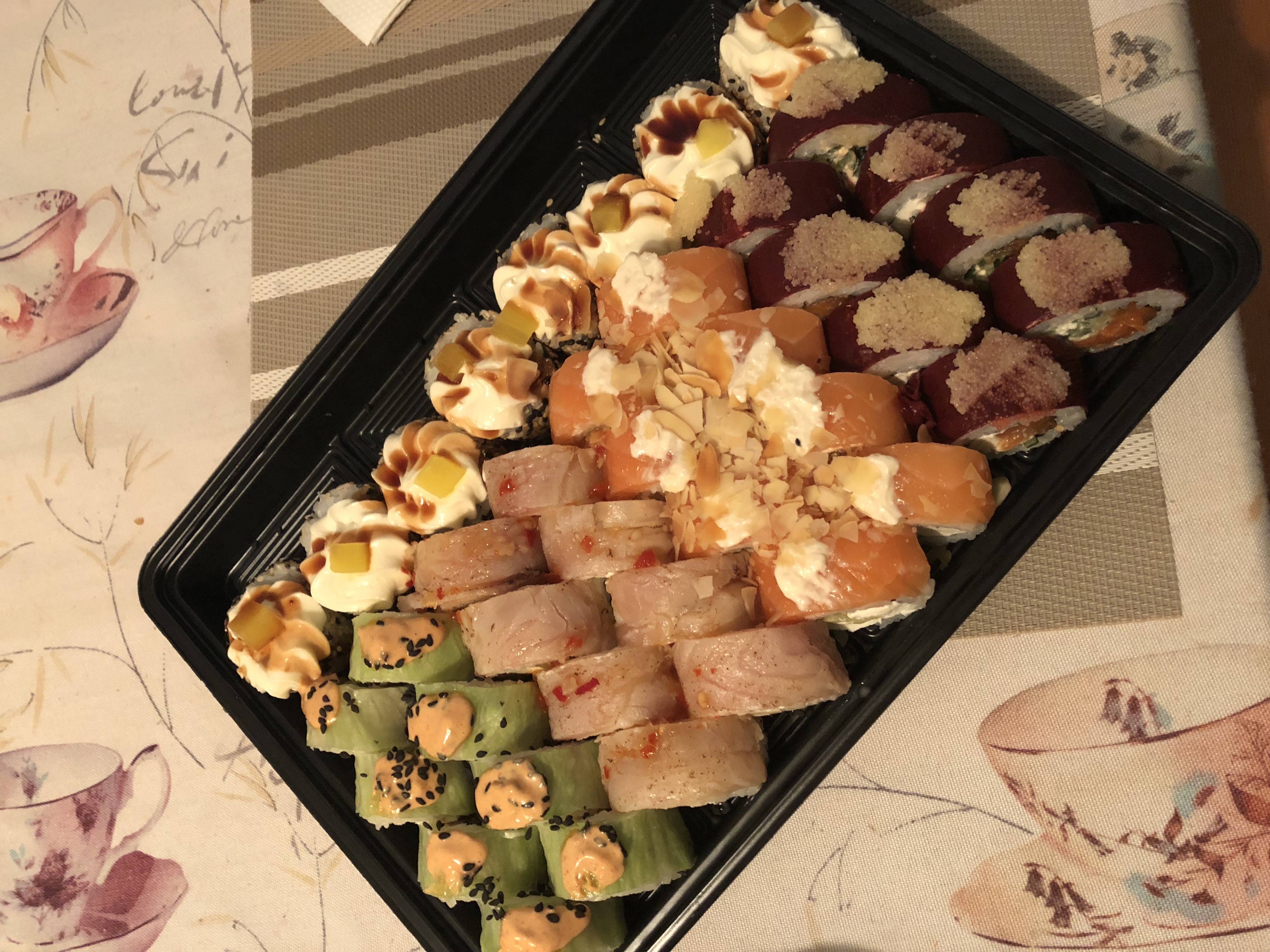 - Внимание! К предзаказу на 31.12 доступны: сет "Новогодний", "Мамины радости", "Макеба", "Ясахи", "Филадельфия", "Каприз", "Игра в кальмара", "Можно всё!", "Мама босс", "Палитра вкуса", "Муж купил", "Биг босс", "Мафия", "Манга", роллы Урамаки, все напитки и гарниры