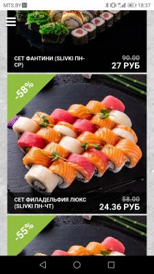 - Промокод дает право на скидку до 60% на суши-сеты от "ART FOOD"