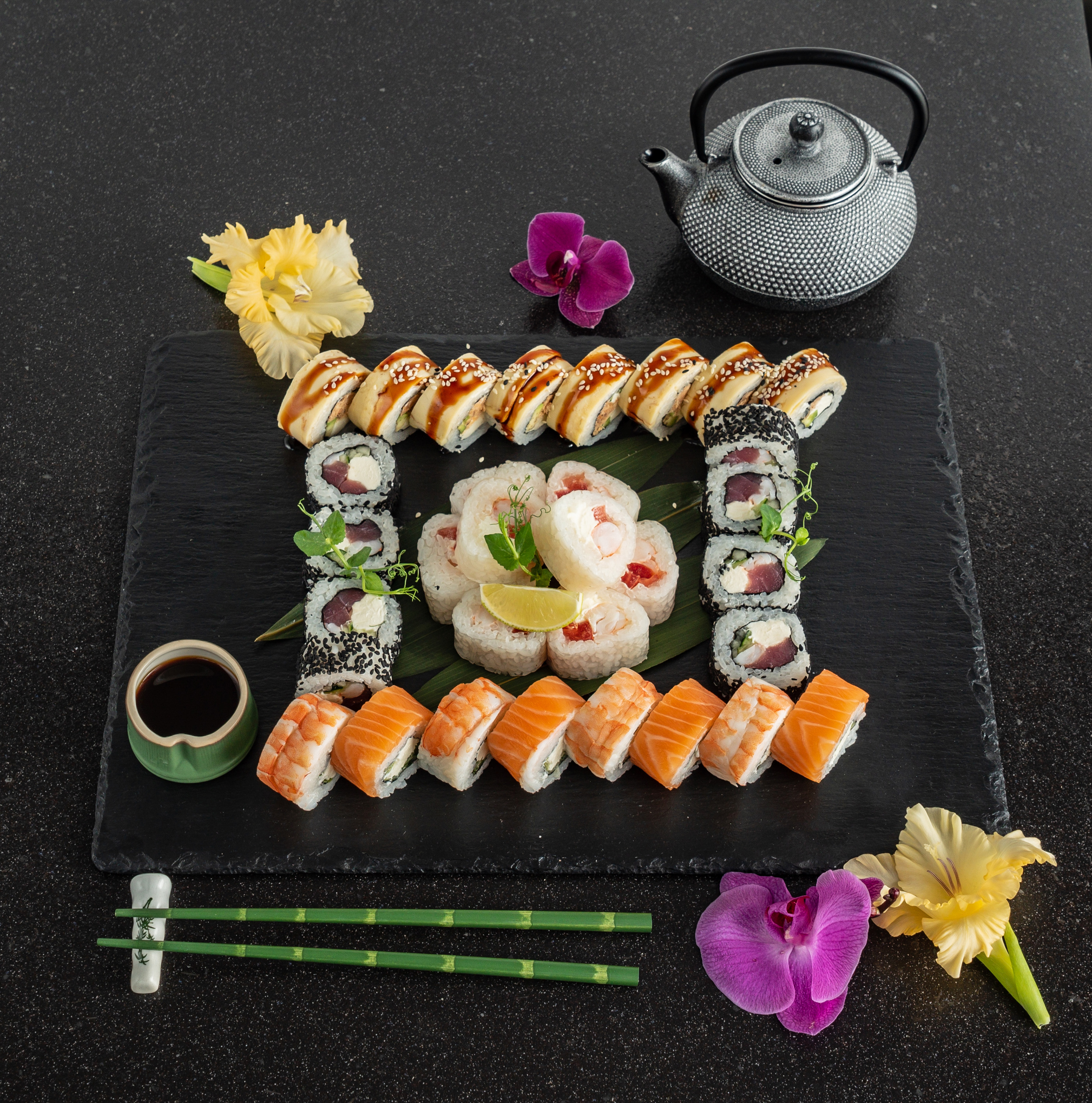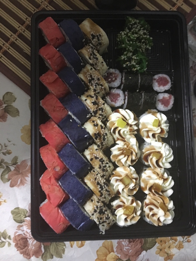 - Внимание! К предзаказу на 31.12 доступны: сет "Новогодний", "Мамины радости", "Макеба", "Ясахи", "Филадельфия", "Каприз", "Игра в кальмара", "Можно всё!", "Мама босс", "Палитра вкуса", "Муж купил", "Биг босс", "Мафия", "Манга", роллы Урамаки, все напитки и гарниры