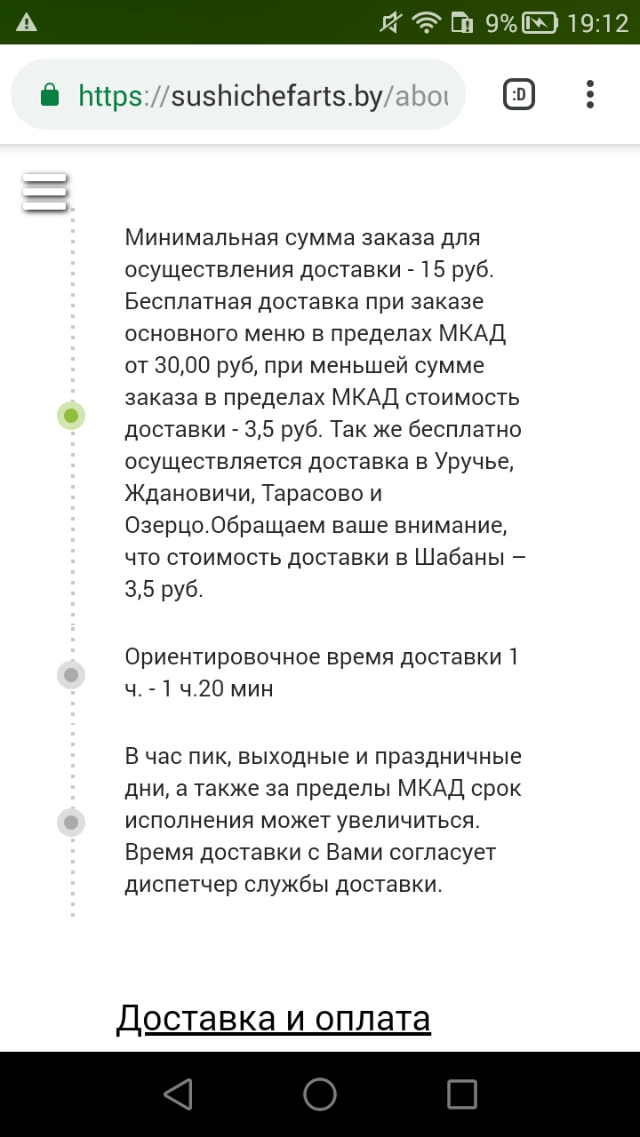 - Время доставки: от 80 минут (доступны все типы оплат)