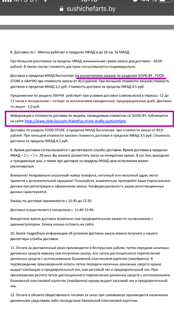 - Оформляя заказ через Slivki.by, пользователь автоматически принимает договор оферты и условия обработки персональных данных, службы доставки "ART FOOD"