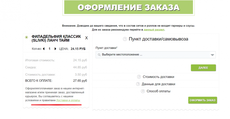 - Время доставки: от 100 минут (доступны все типы оплат)