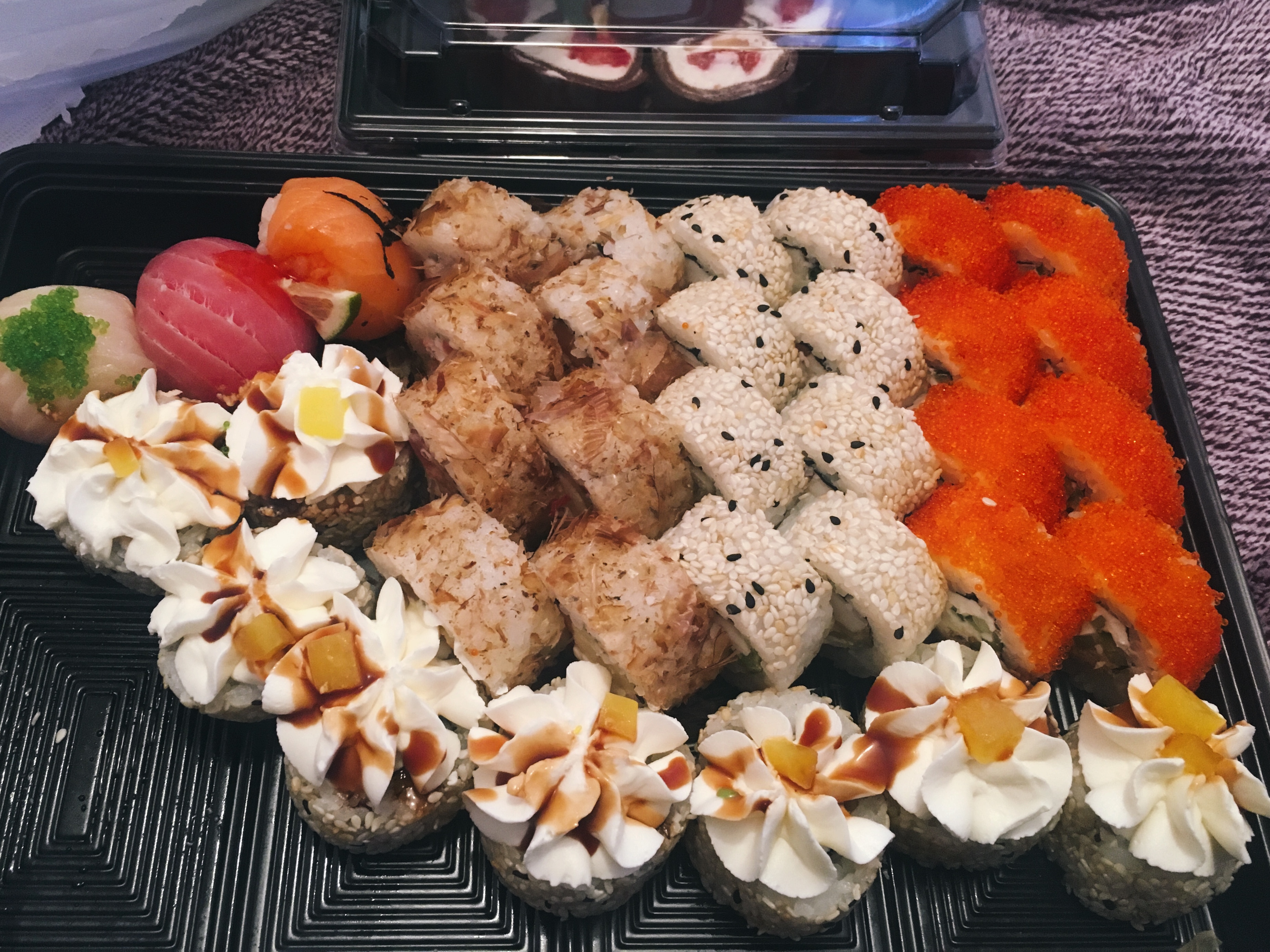 - Внимание! К предзаказу на 31.12 доступны: сет "Новогодний", "Мамины радости", "Макеба", "Ясахи", "Филадельфия", "Каприз", "Игра в кальмара", "Можно всё!", "Мама босс", "Палитра вкуса", "Муж купил", "Биг босс", "Мафия", "Манга", роллы Урамаки, все напитки и гарниры