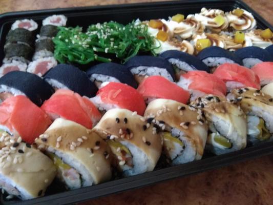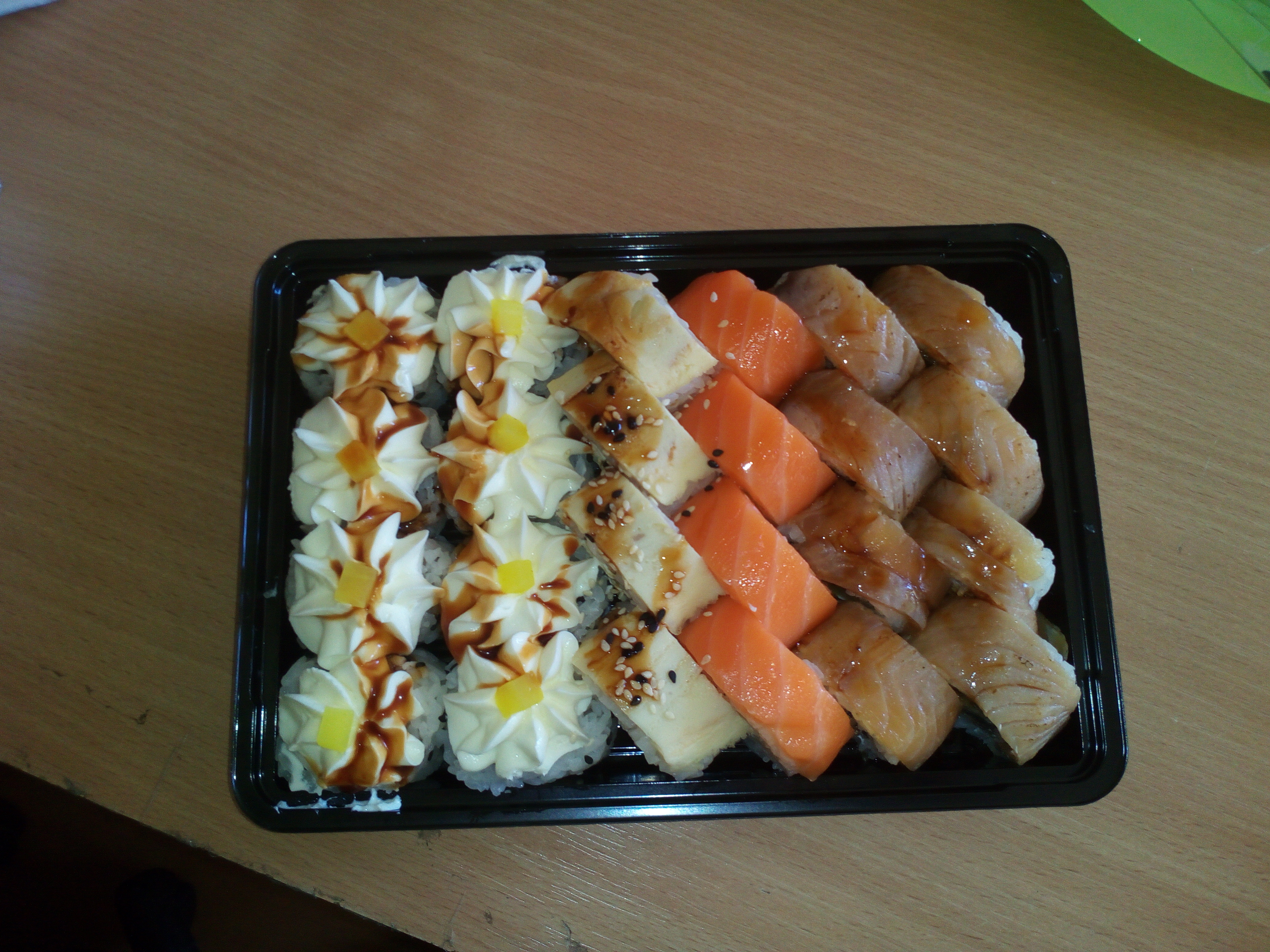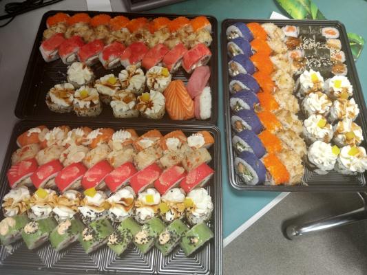 Заказывали на большую компанию. Все были довольны. Вкусные и свежие суши.