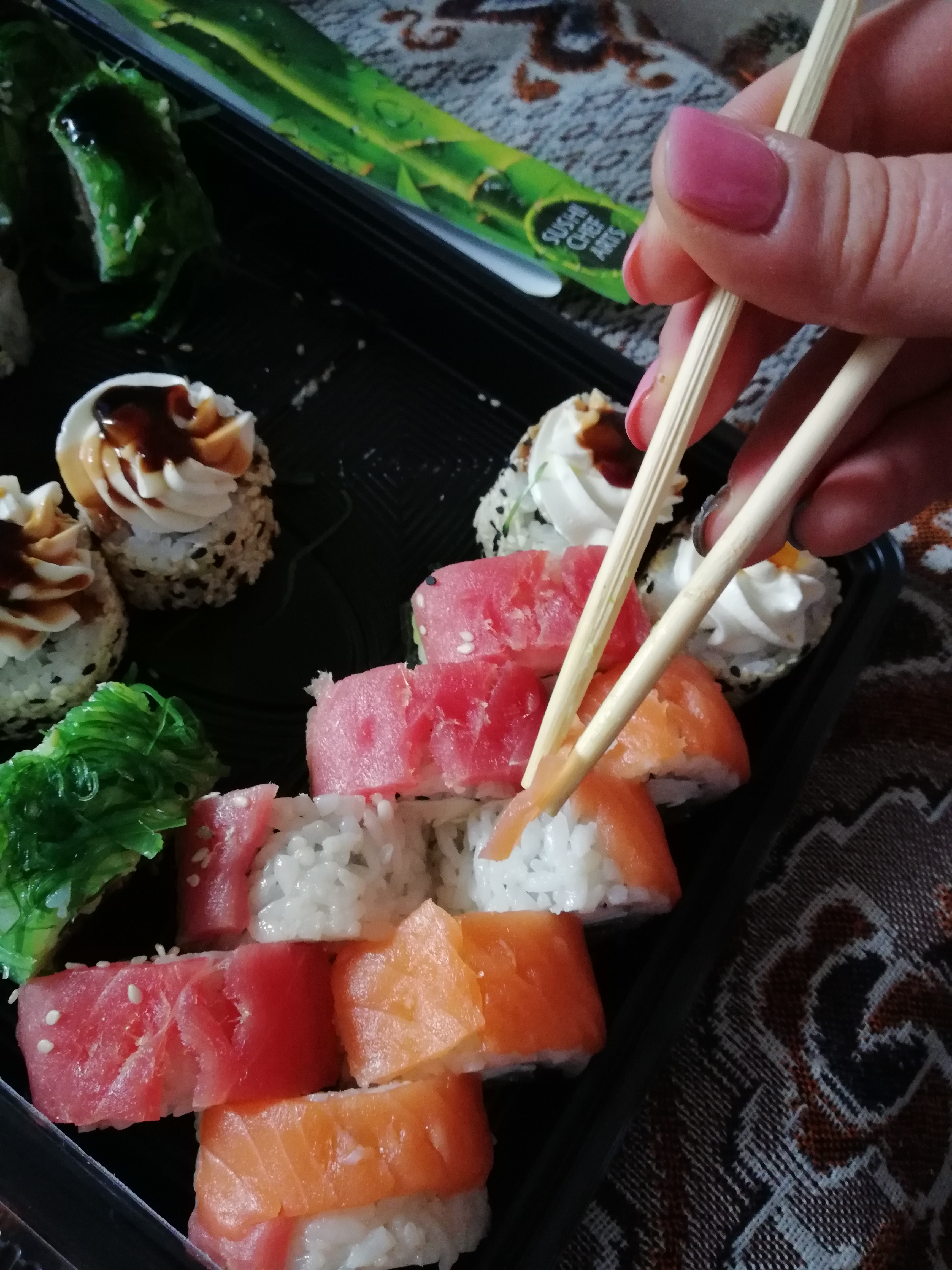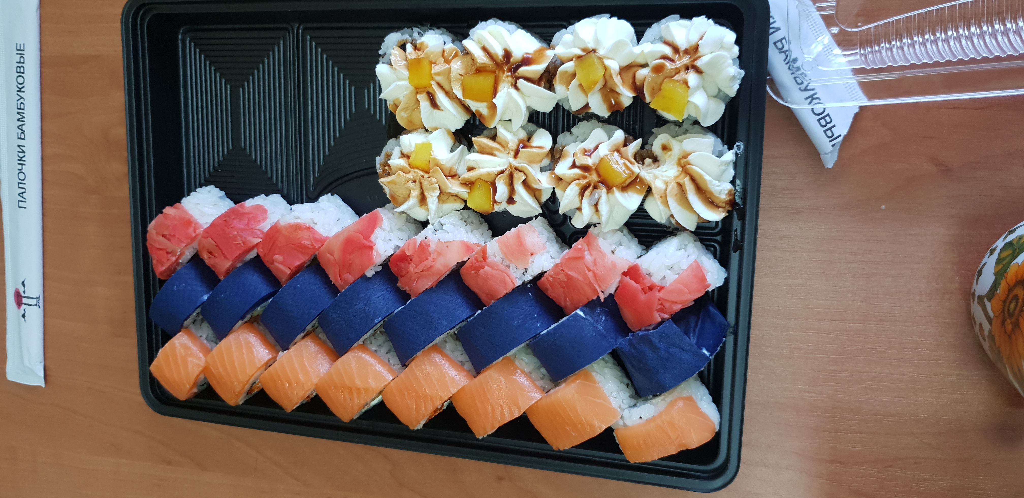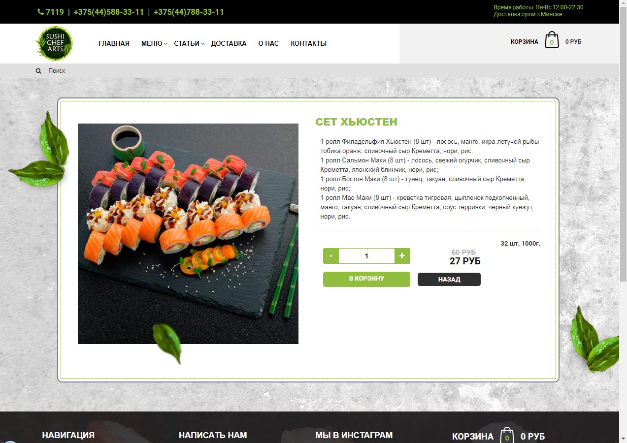 - Внимание! К предзаказу на 31.12 доступны: сет "Новогодний", "Мамины радости", "Макеба", "Ясахи", "Филадельфия", "Каприз", "Игра в кальмара", "Можно всё!", "Мама босс", "Палитра вкуса", "Муж купил", "Биг босс", "Мафия", "Манга", роллы Урамаки, все напитки и гарниры