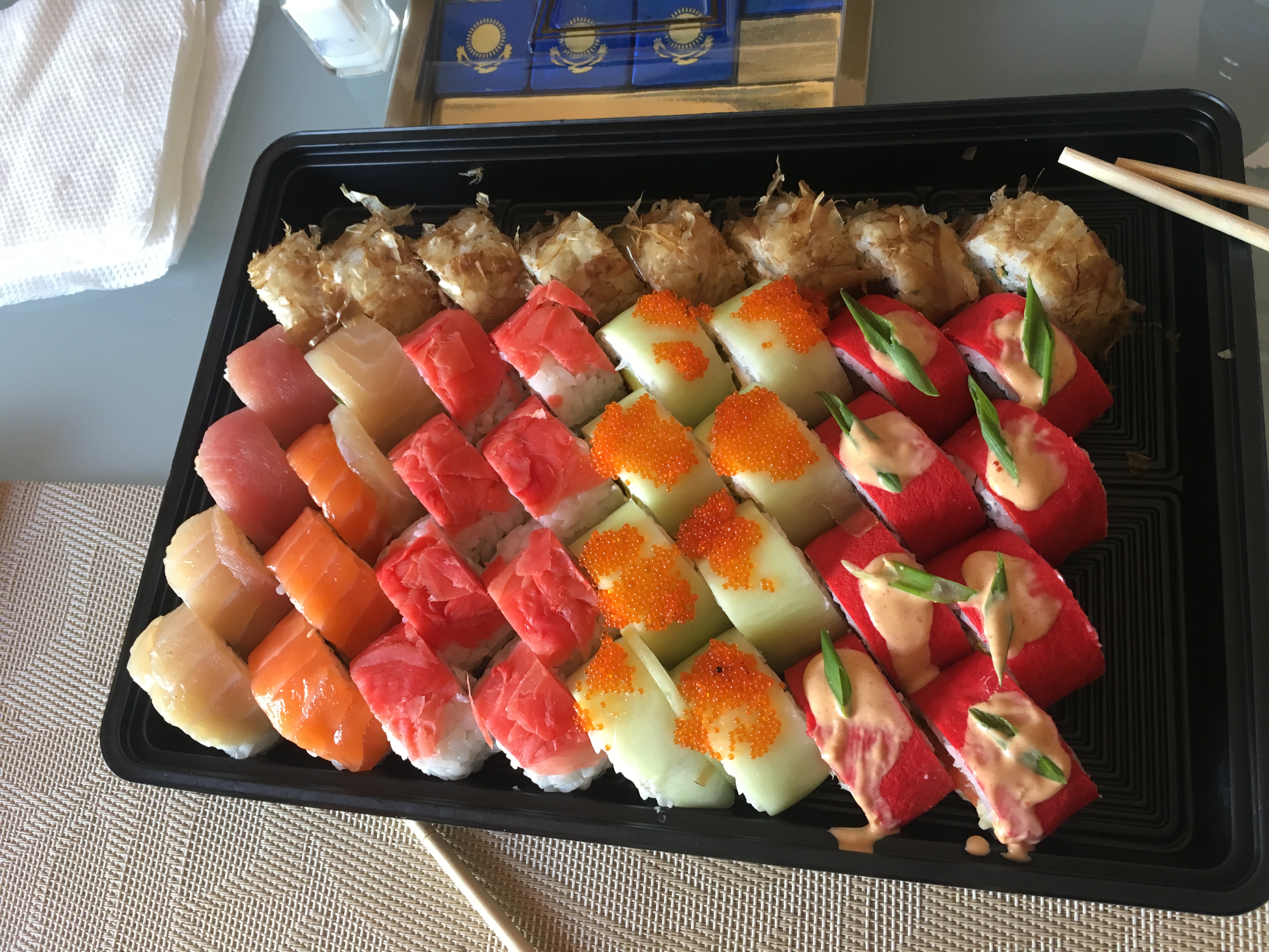 - На 1 суши-сет прилагается не более 4 комплектов палочек