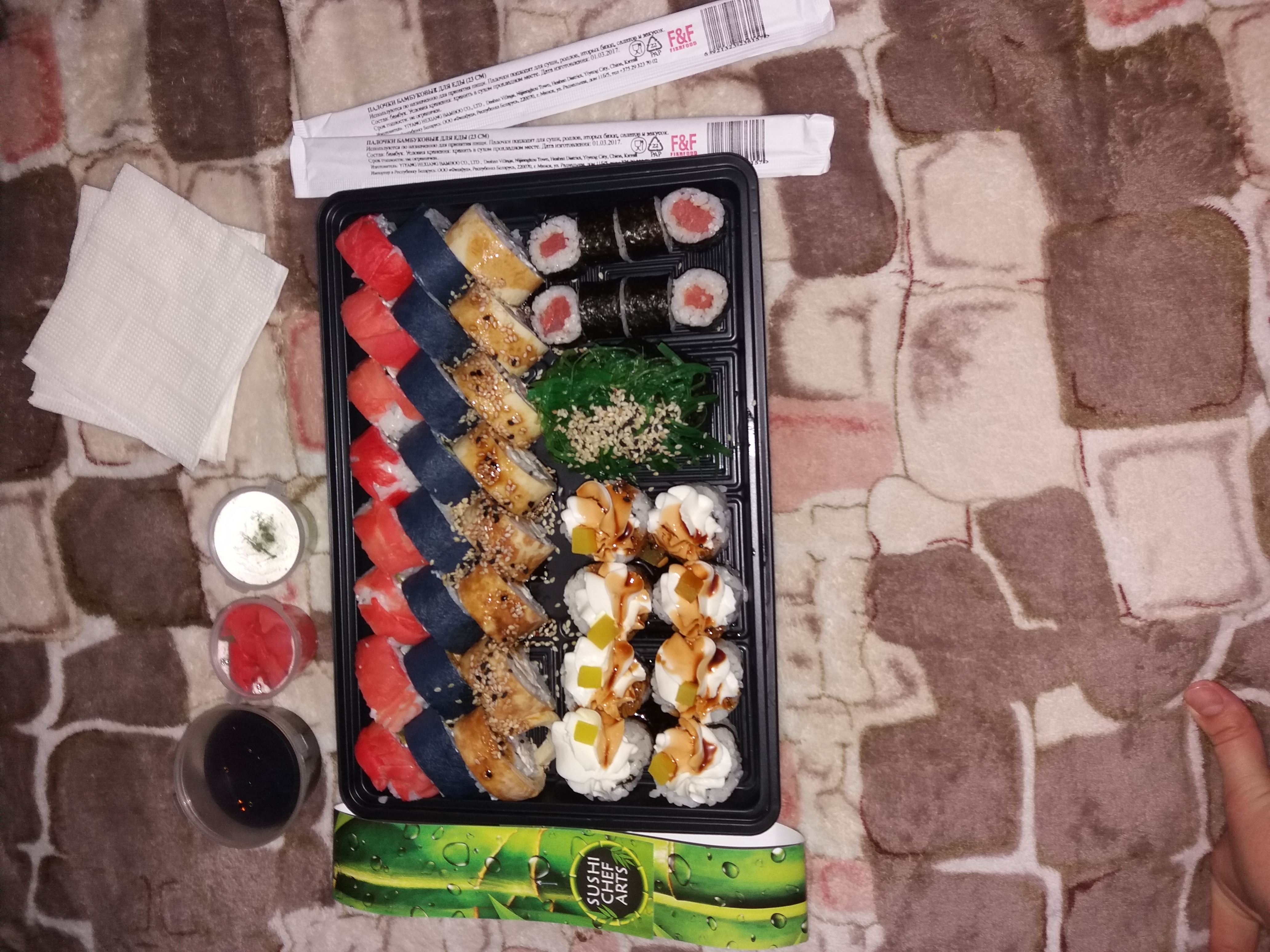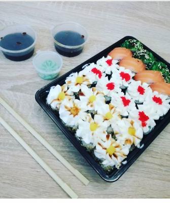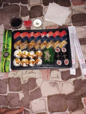 Суши вкусные,свежие,красивые)Заказываем уже не первый раз.Один раз забирали сами,заказ был сделан к нужному времени.В другой раз доставка и вовремя.Будем заказывать еще)