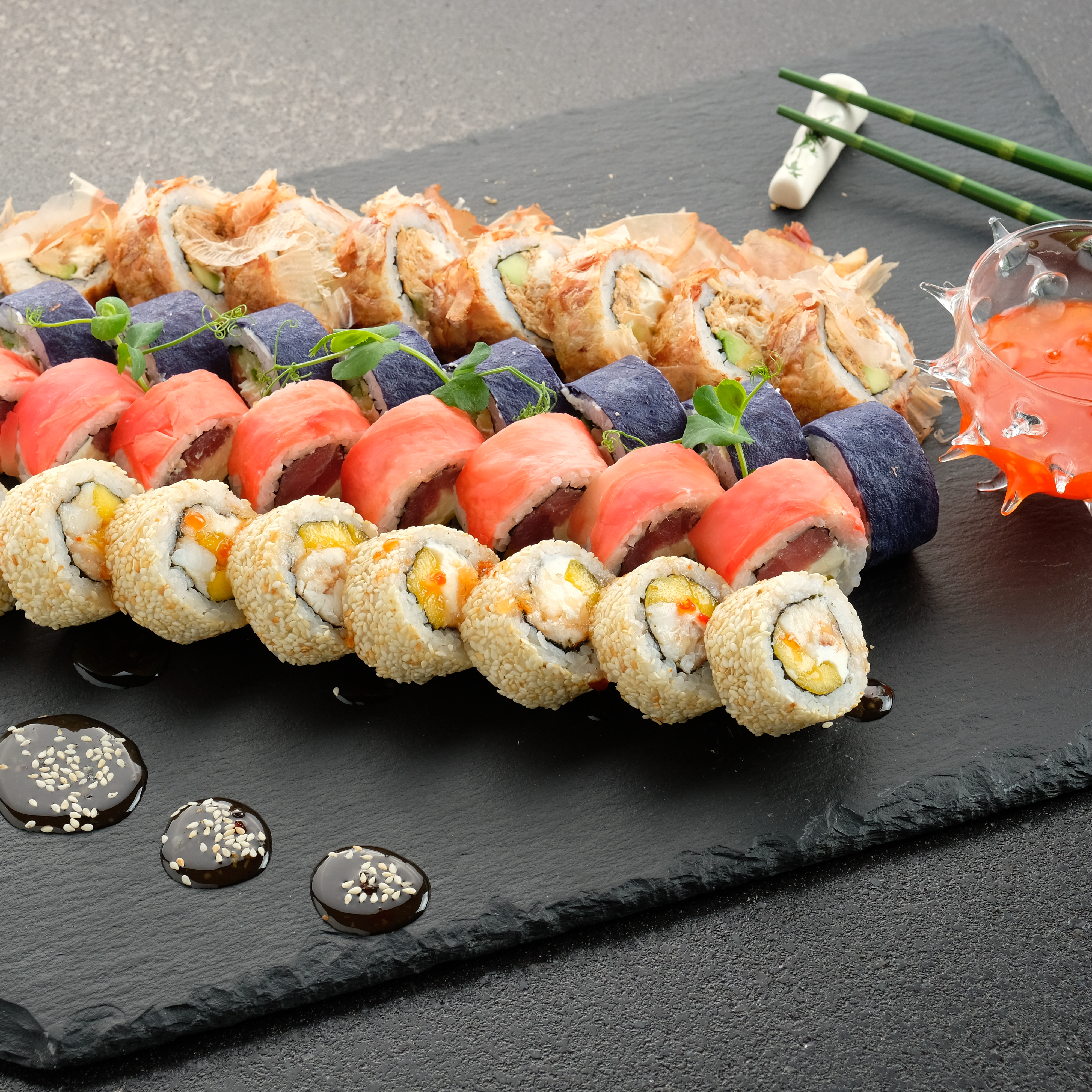 - Внимание! К предзаказу на 31.12 доступны: сет "Новогодний", "Мамины радости", "Макеба", "Ясахи", "Филадельфия", "Каприз", "Игра в кальмара", "Можно всё!", "Мама босс", "Палитра вкуса", "Муж купил", "Биг босс", "Мафия", "Манга", роллы Урамаки, все напитки и гарниры