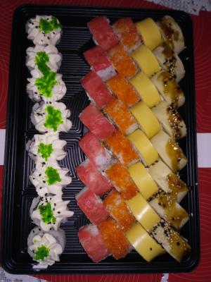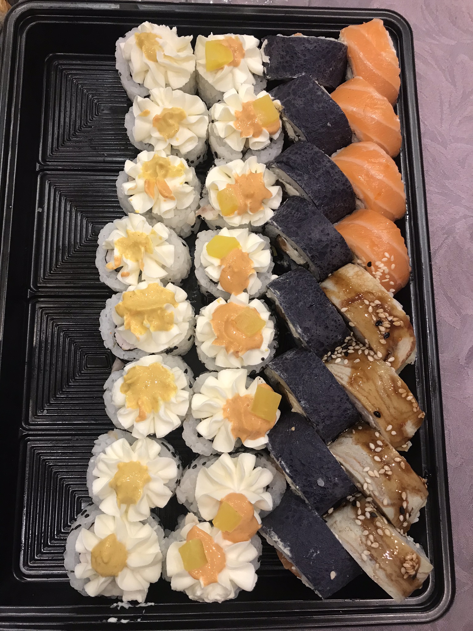 Брали несколько разных сетов по акции. Все были замечательными! Одни из лучших суши в городе! Едим минимально соленую пищу, поэтому выбрать съедобные суши всегда сложно. Но здесь... МММ... Рыбка свежайшая, не соленая, другие ингредиенты тоже прекрасные: написано, что сыр креметта, значит креметта. Соевый соус также прекрасного качества. Советуем!