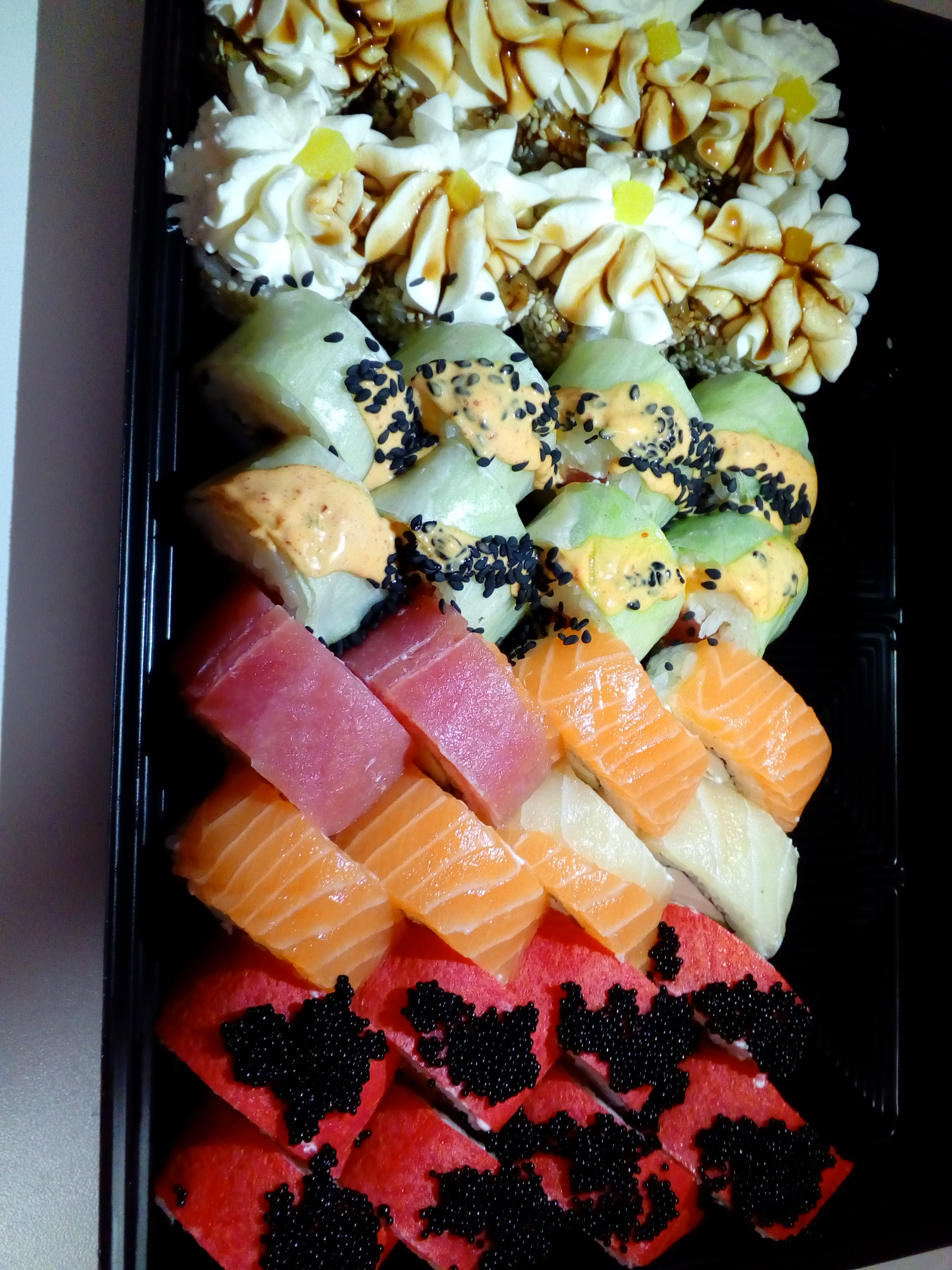 - Внимание! К предзаказу на 31.12 доступны: сет "Новогодний", "Мамины радости", "Макеба", "Ясахи", "Филадельфия", "Каприз", "Игра в кальмара", "Можно всё!", "Мама босс", "Палитра вкуса", "Муж купил", "Биг босс", "Мафия", "Манга", роллы Урамаки, все напитки и гарниры