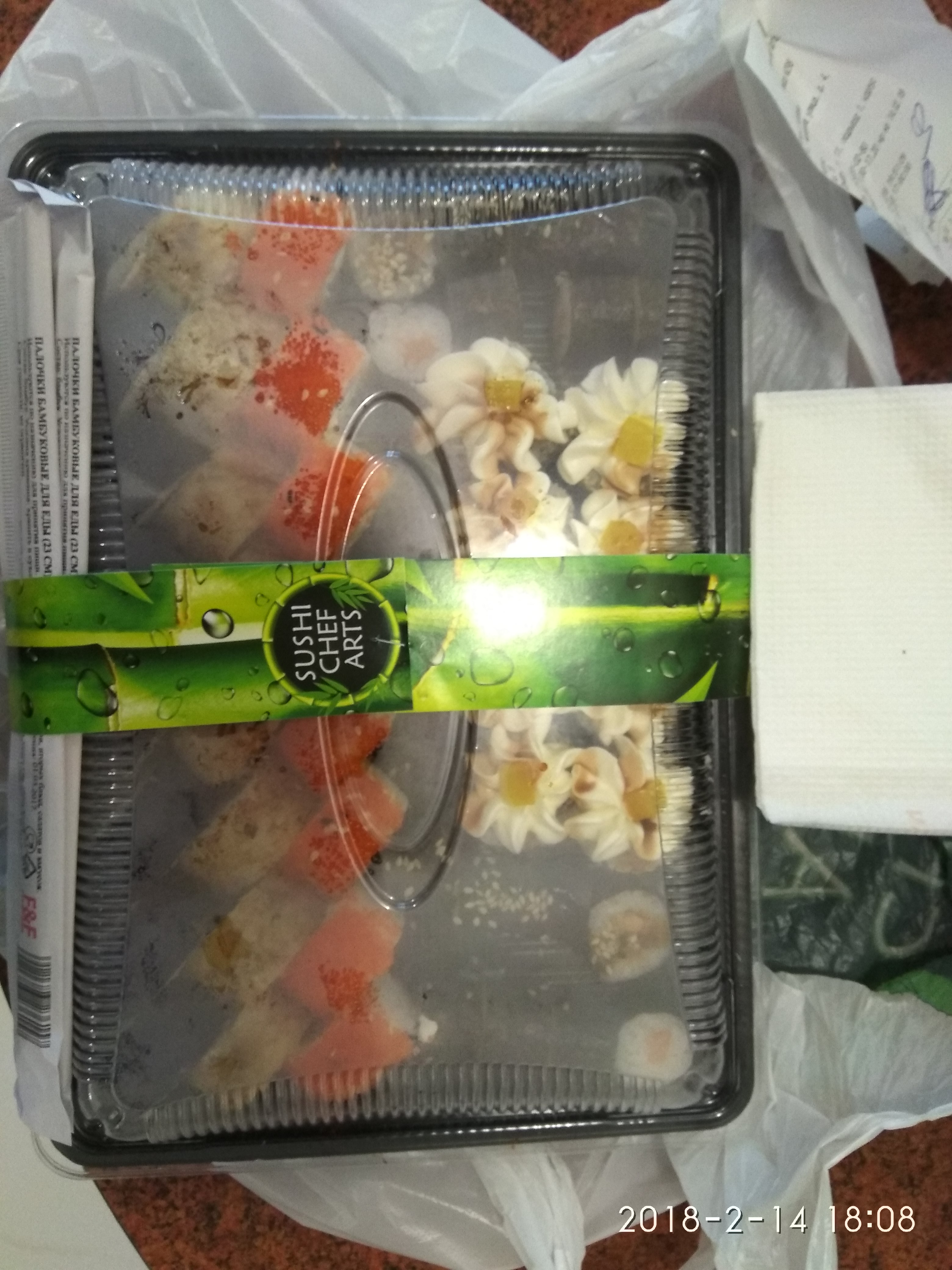 - На 1 суши-сет прилагается не более 4 комплектов палочек