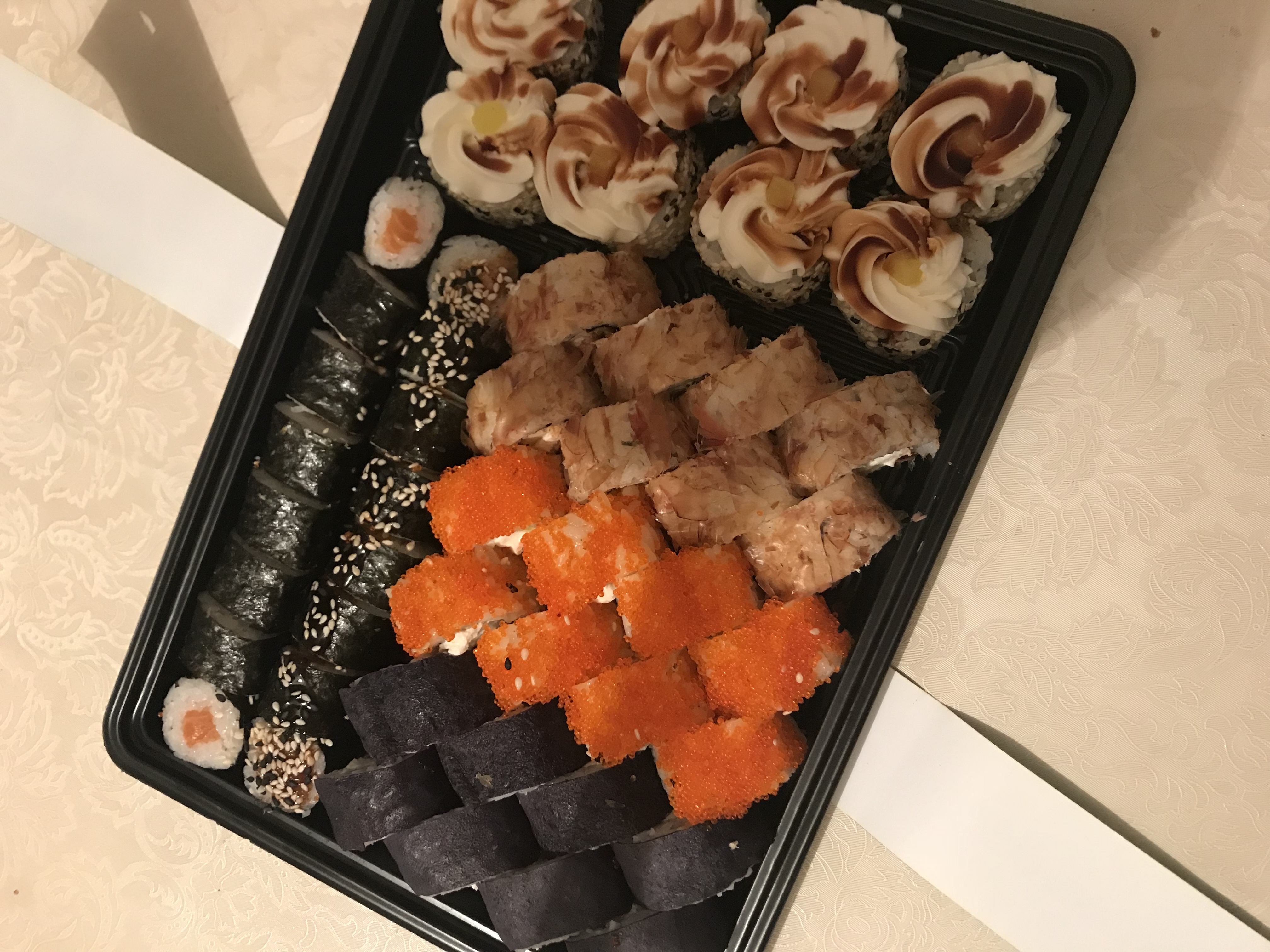 - Внимание! К предзаказу на 31.12 доступны: сет "Новогодний", "Мамины радости", "Макеба", "Ясахи", "Филадельфия", "Каприз", "Игра в кальмара", "Можно всё!", "Мама босс", "Палитра вкуса", "Муж купил", "Биг босс", "Мафия", "Манга", роллы Урамаки, все напитки и гарниры