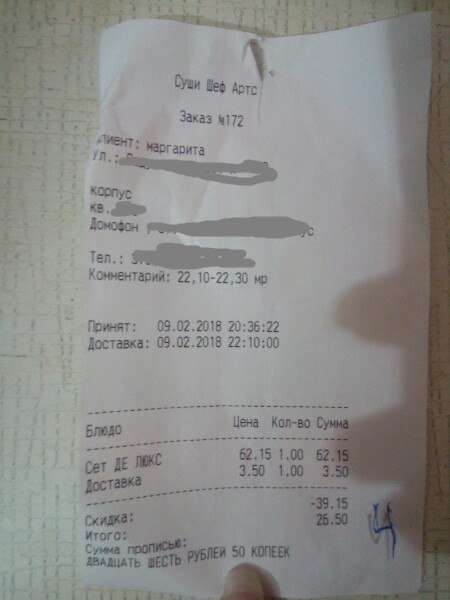 - Время доставки: от 80 минут (доступны все типы оплат)