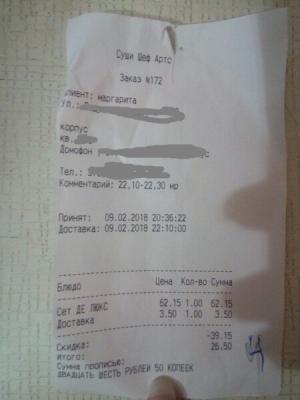 - Промокод дает право на скидку до 60% на суши-сеты от "ART FOOD"