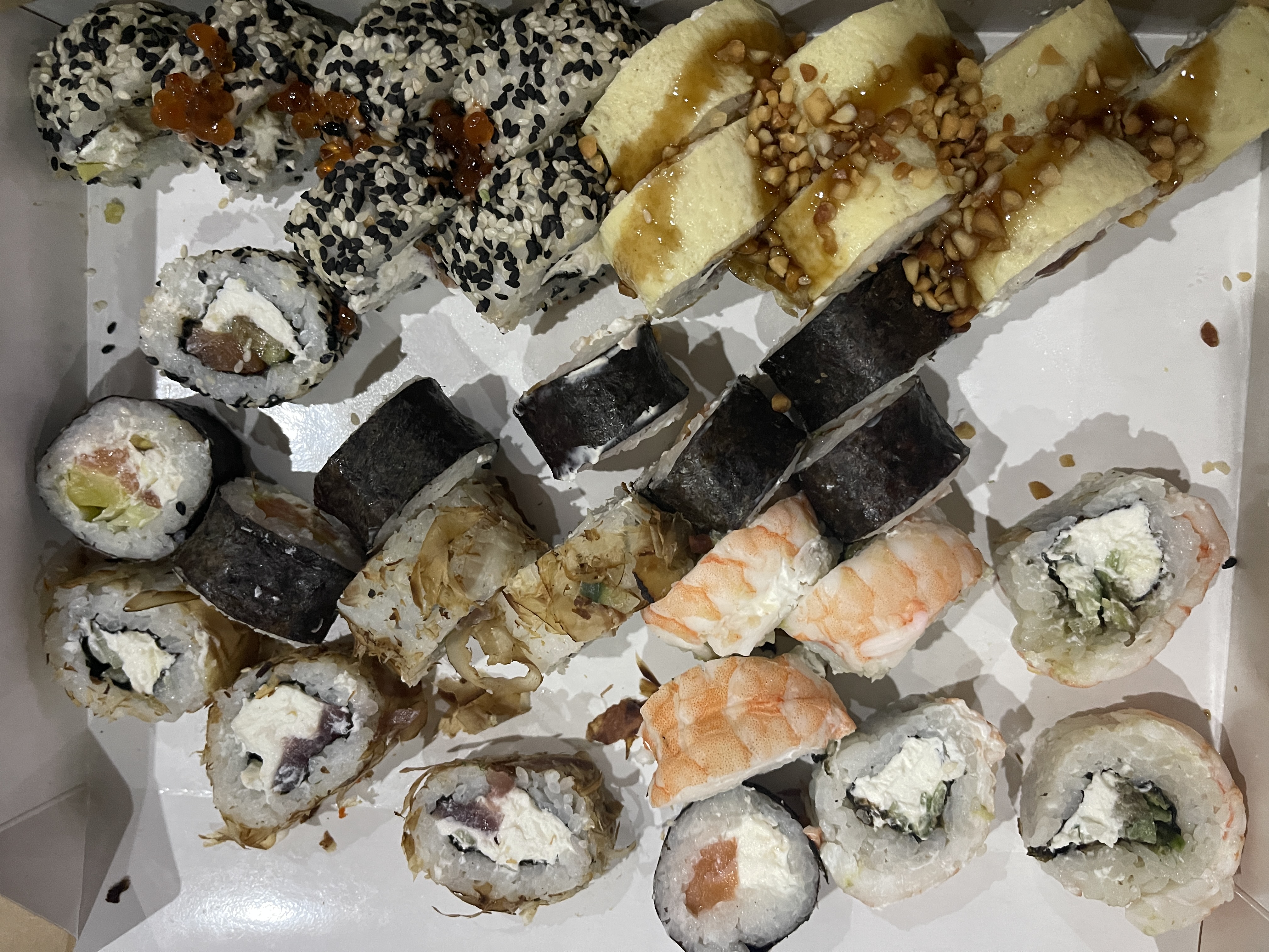 - На 1 суши-сет прилагается не более 4 комплектов палочек