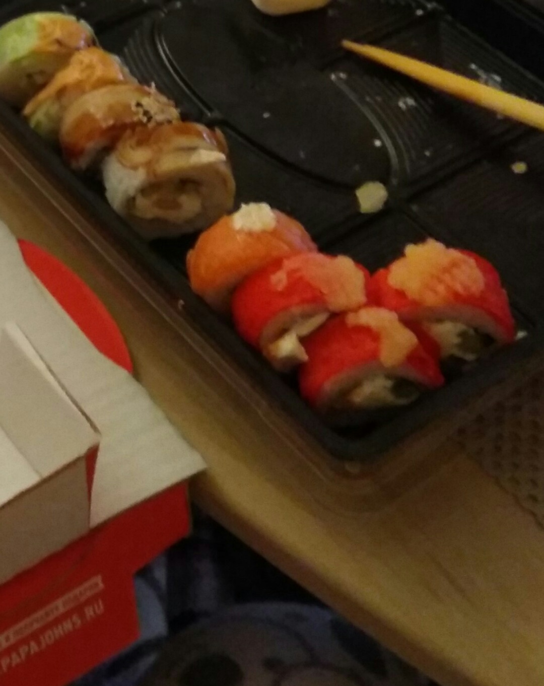 - На 1 суши-сет прилагается не более 4 комплектов палочек