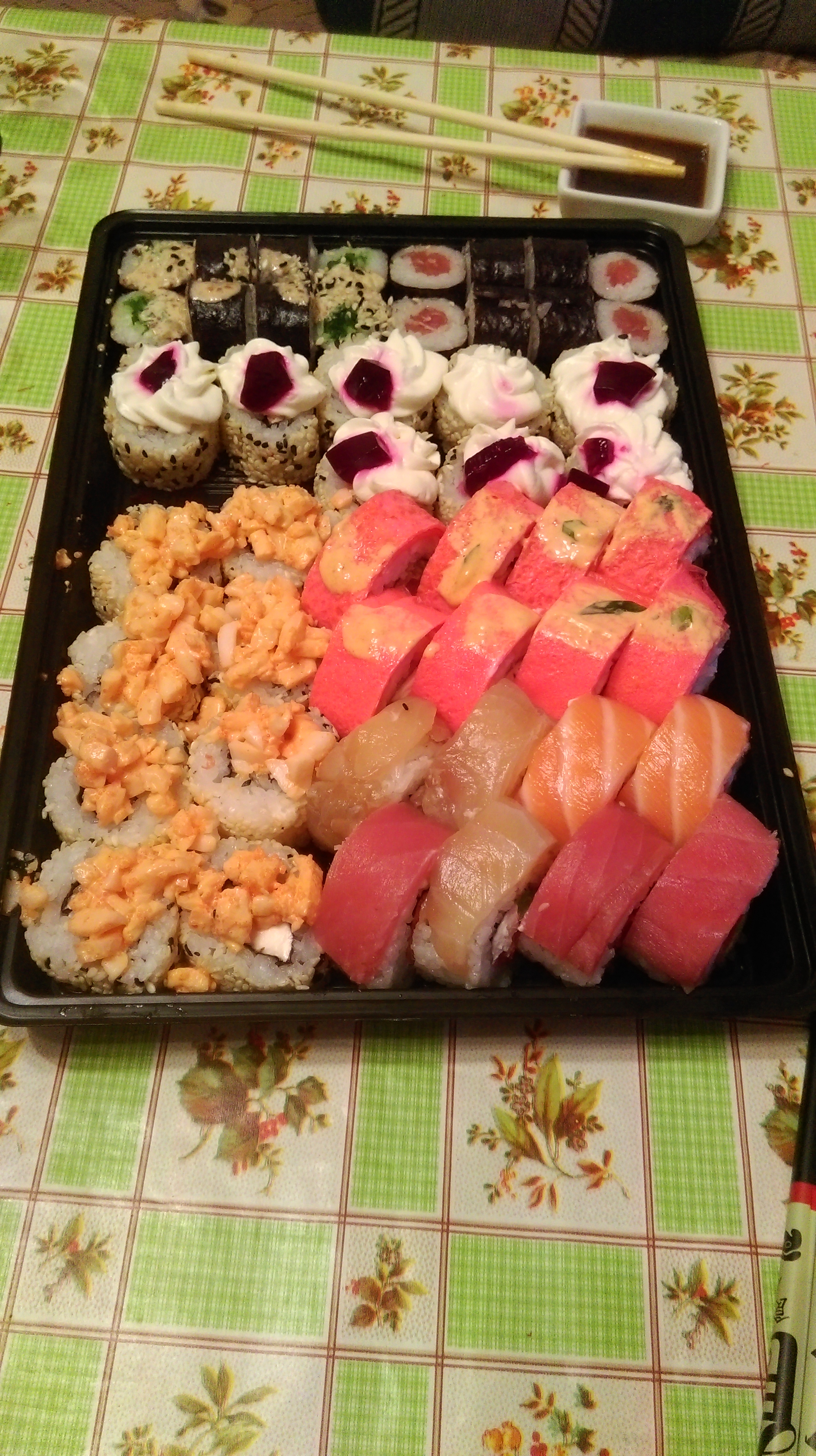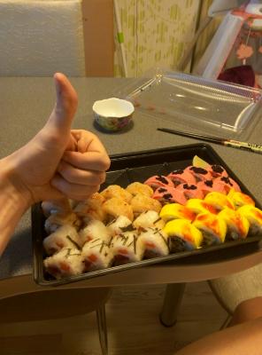 - Внимание! К предзаказу на 31.12 доступны: сет "Новогодний", "Мамины радости", "Макеба", "Ясахи", "Филадельфия", "Каприз", "Игра в кальмара", "Можно всё!", "Мама босс", "Палитра вкуса", "Муж купил", "Биг босс", "Мафия", "Манга", роллы Урамаки, все напитки и гарниры