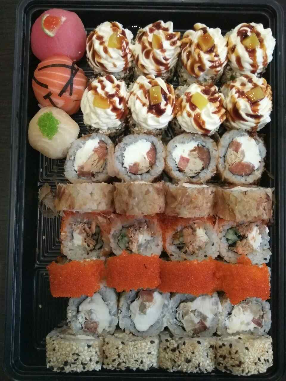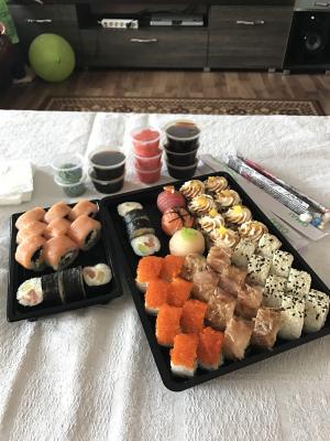 - Внимание! К предзаказу на 31.12 доступны: сет "Новогодний", "Мамины радости", "Макеба", "Ясахи", "Филадельфия", "Каприз", "Игра в кальмара", "Можно всё!", "Мама босс", "Палитра вкуса", "Муж купил", "Биг босс", "Мафия", "Манга", роллы Урамаки, все напитки и гарниры