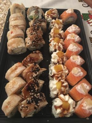 - Внимание! К предзаказу на 31.12 доступны: сет "Новогодний", "Мамины радости", "Макеба", "Ясахи", "Филадельфия", "Каприз", "Игра в кальмара", "Можно всё!", "Мама босс", "Палитра вкуса", "Муж купил", "Биг босс", "Мафия", "Манга", роллы Урамаки, все напитки и гарниры