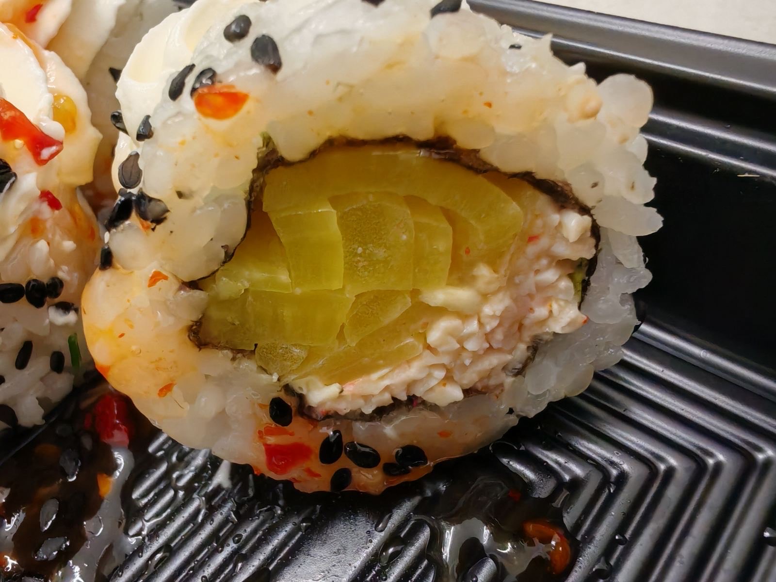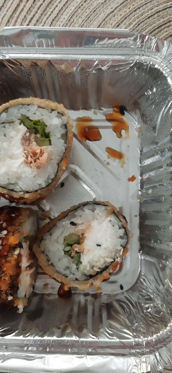 Читала конечно отзывы ранее, но кто бы мог подумать что и меня это коснётся. В роле где яблоки попался то ли пластик, то ли стекло, но зуб очень почувствовал. Ребята это отвратительно, что происходит, уже не первый раз берём у вас и все нравилось. Так же роллы были сплющены. Разочарование полнейшее.