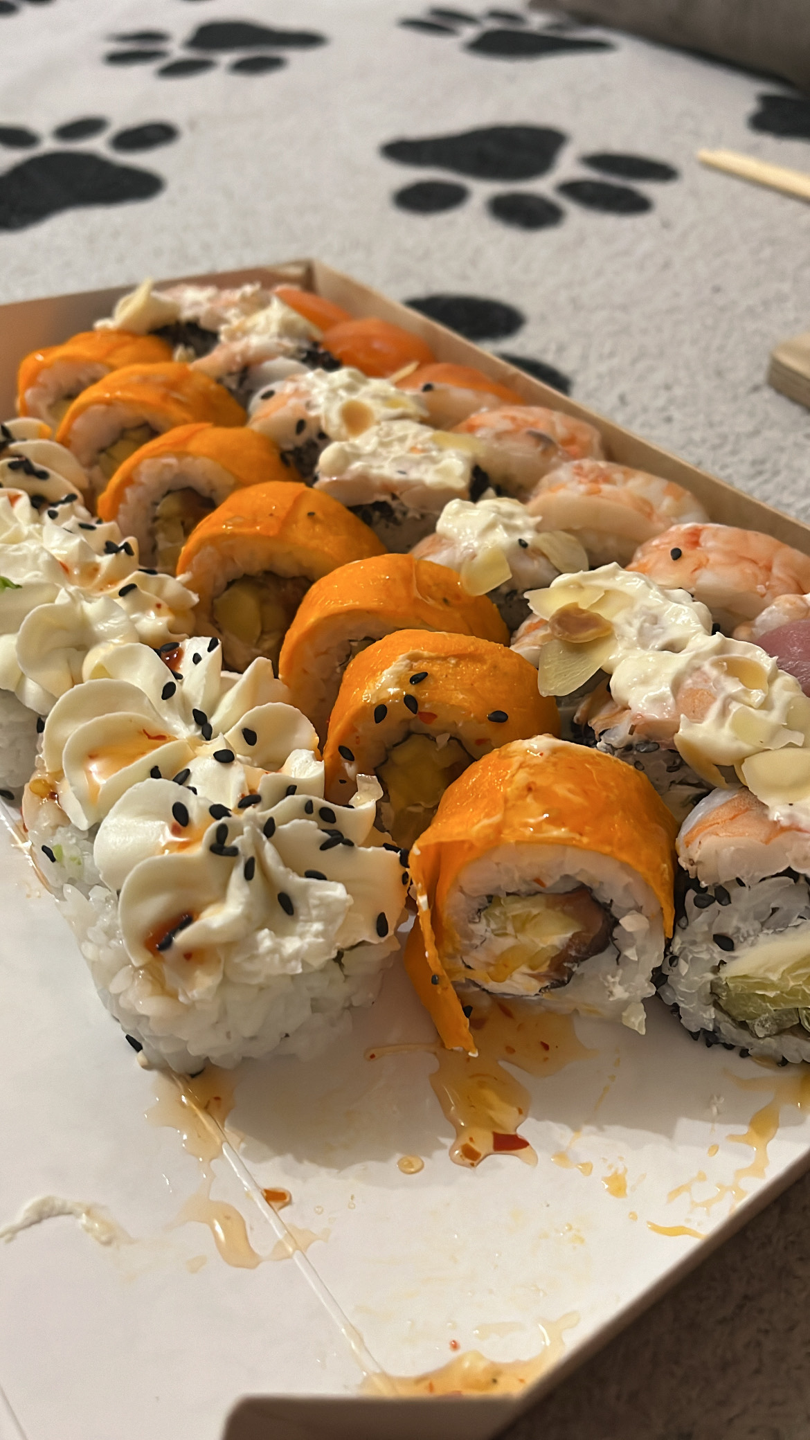 - На 1 суши-сет прилагается не более 4 комплектов палочек