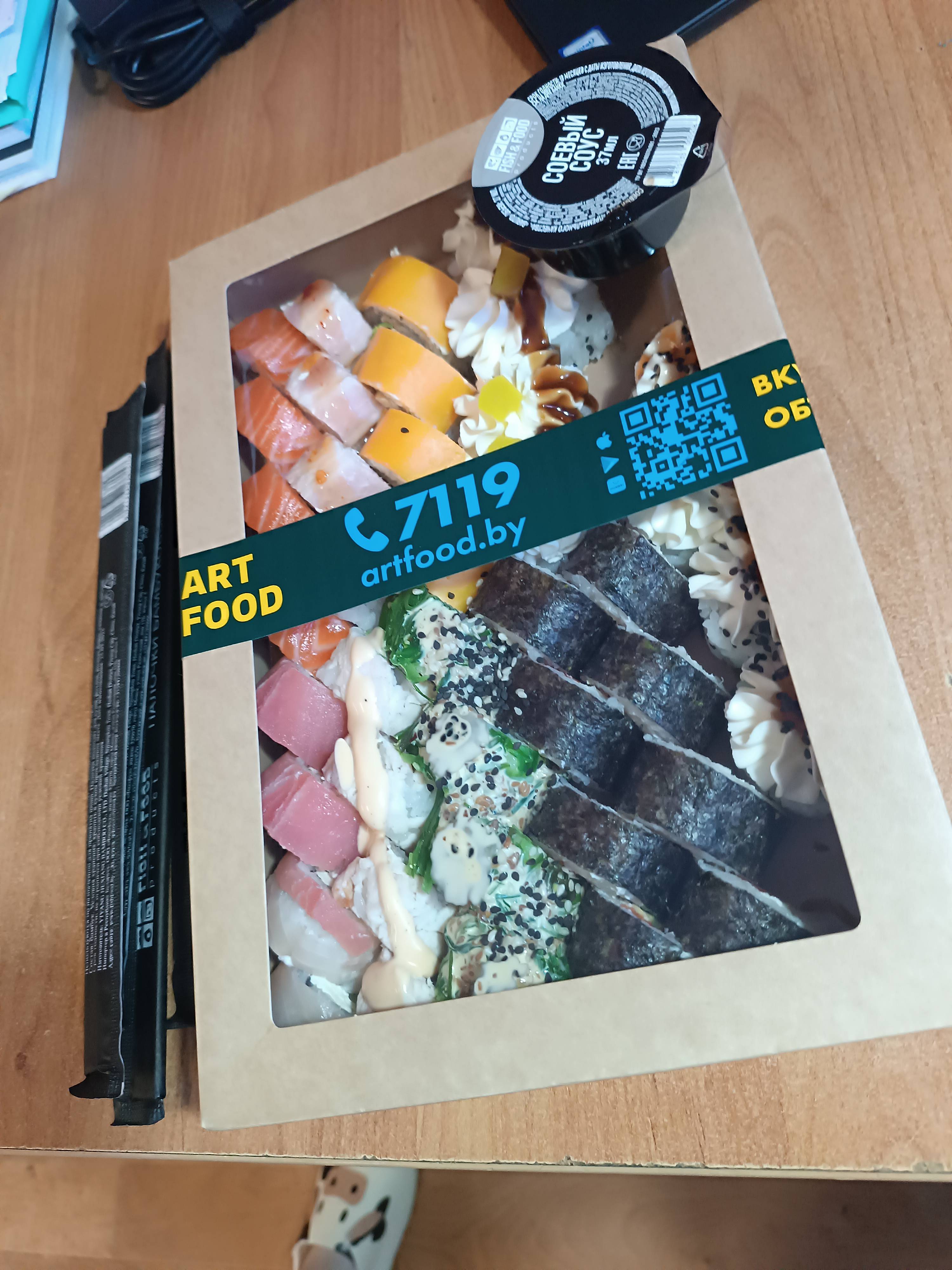- Промокод дает право на скидку до 60% на суши-сеты от "ART FOOD"