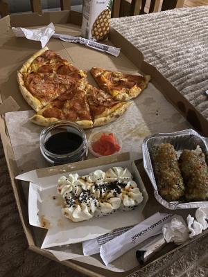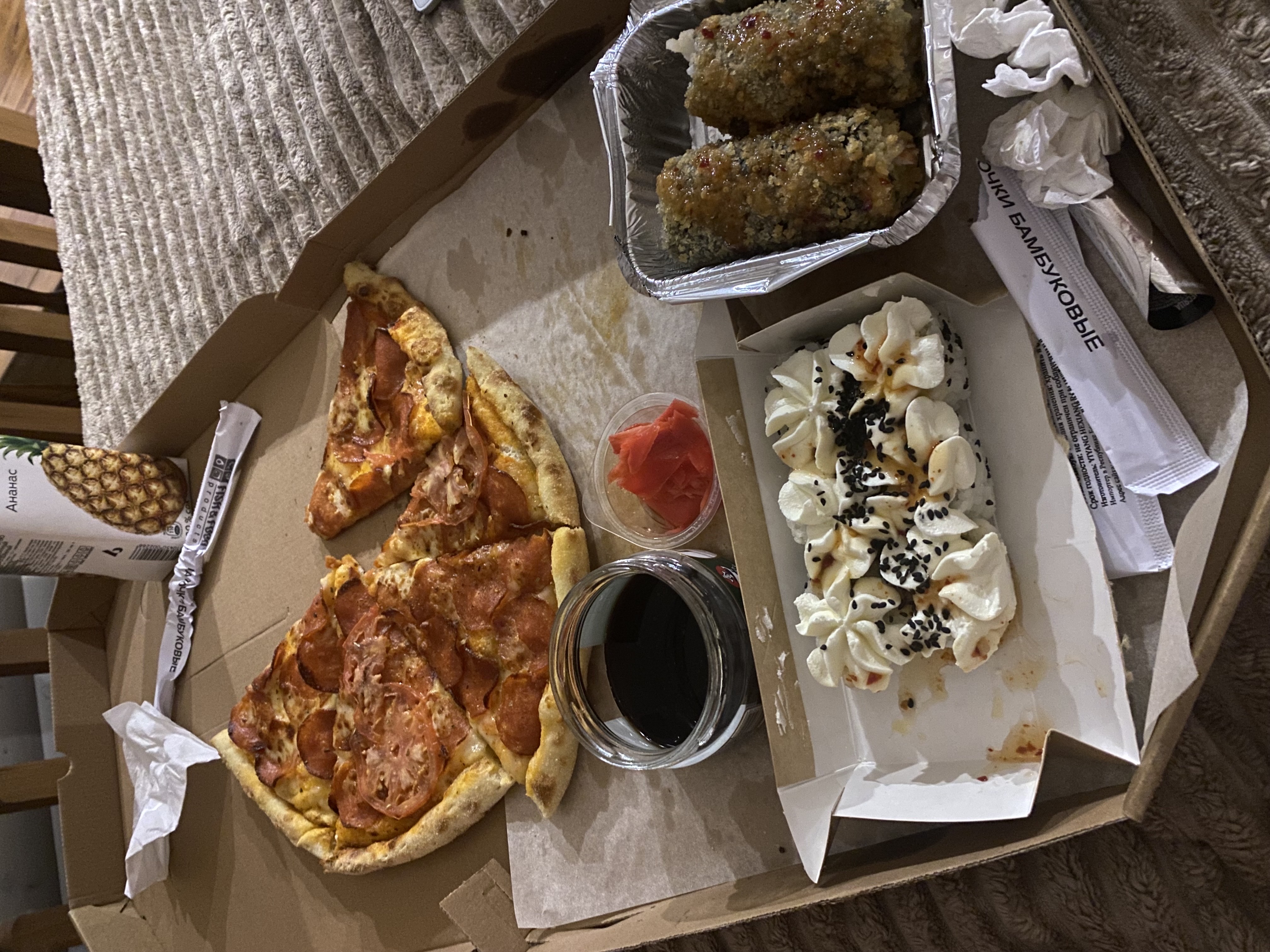 Делали заказ на выходных, остались довольны. Быстрая доставка, вкусная пицца, свежие ингредиенты в роллах. Рекомендую!