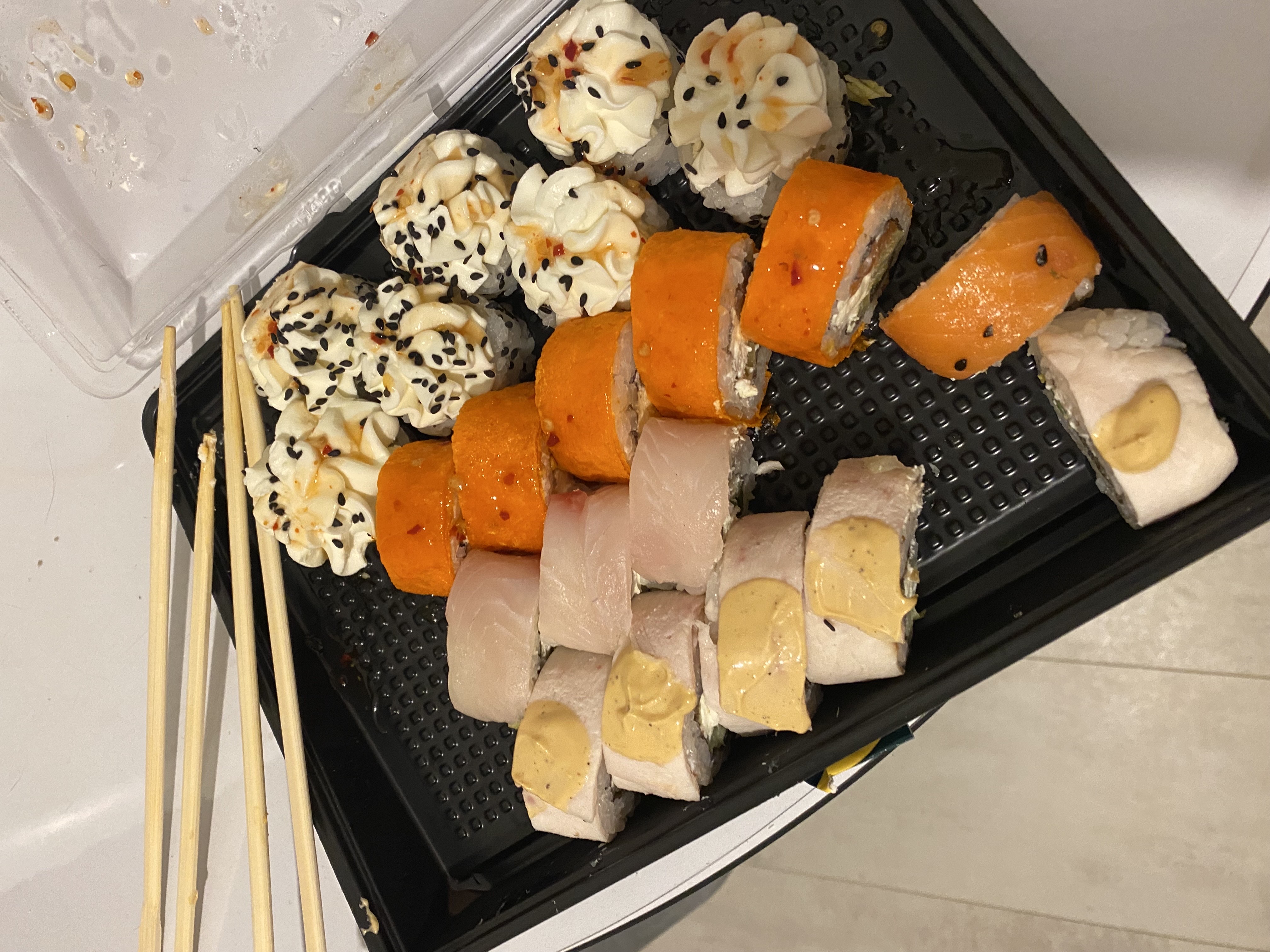 Сегодня заказали сет СЛИВКИ, съели пару штук и остальное в мусорку. Почему? Во первых, не вкусно. Во вторых, странный привкус. И уже через пару часов скрутило живот. Причем у обоих. Это вообще как?! Разочарование полное (