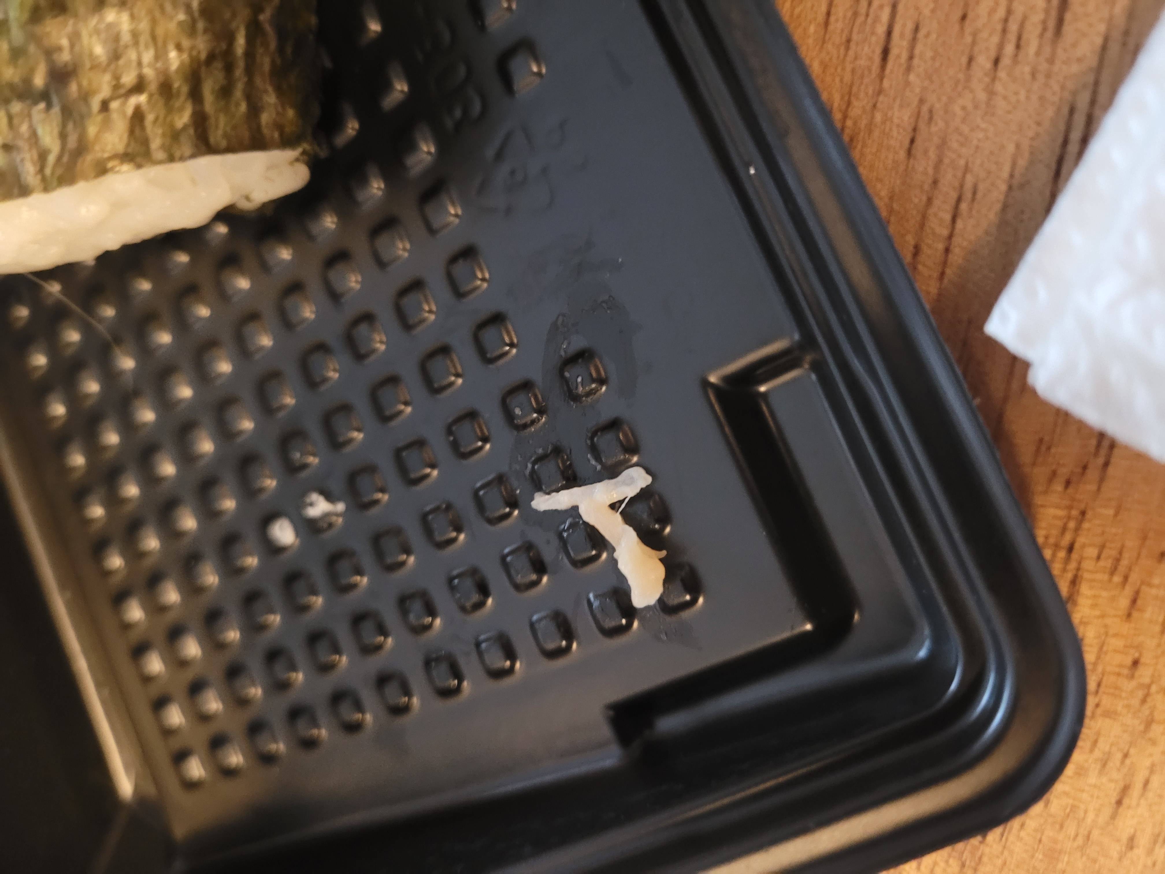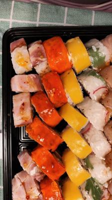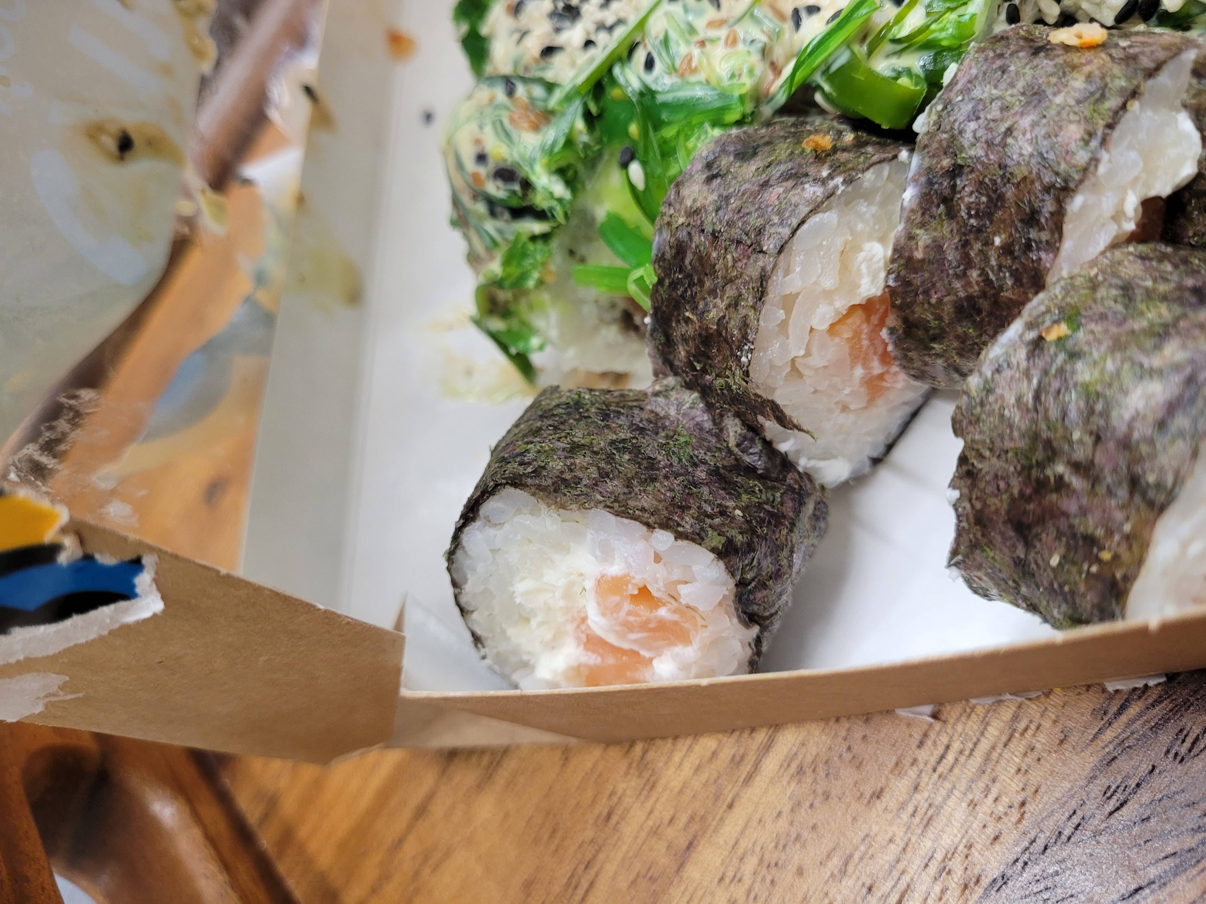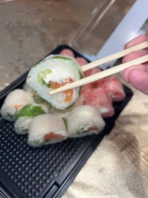 Сами суши выполнены небрежно, на суши остался пакет от сворачивания, не сильно большая проблема но показывает отношения к клиенту(