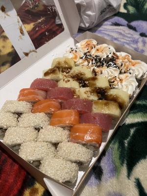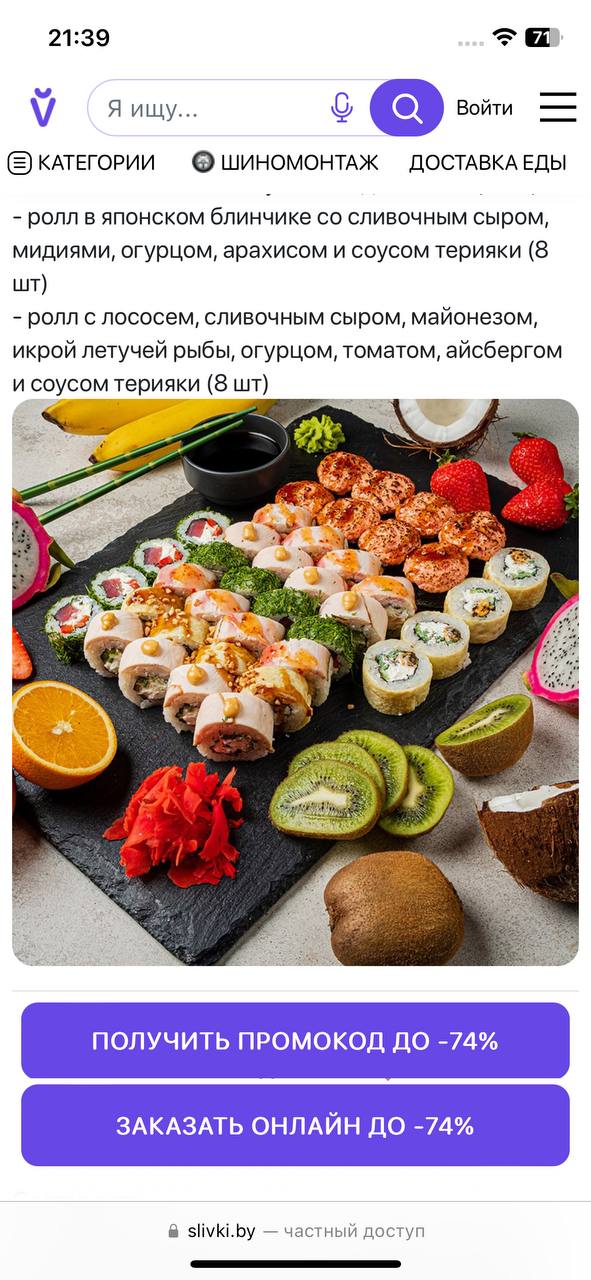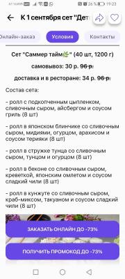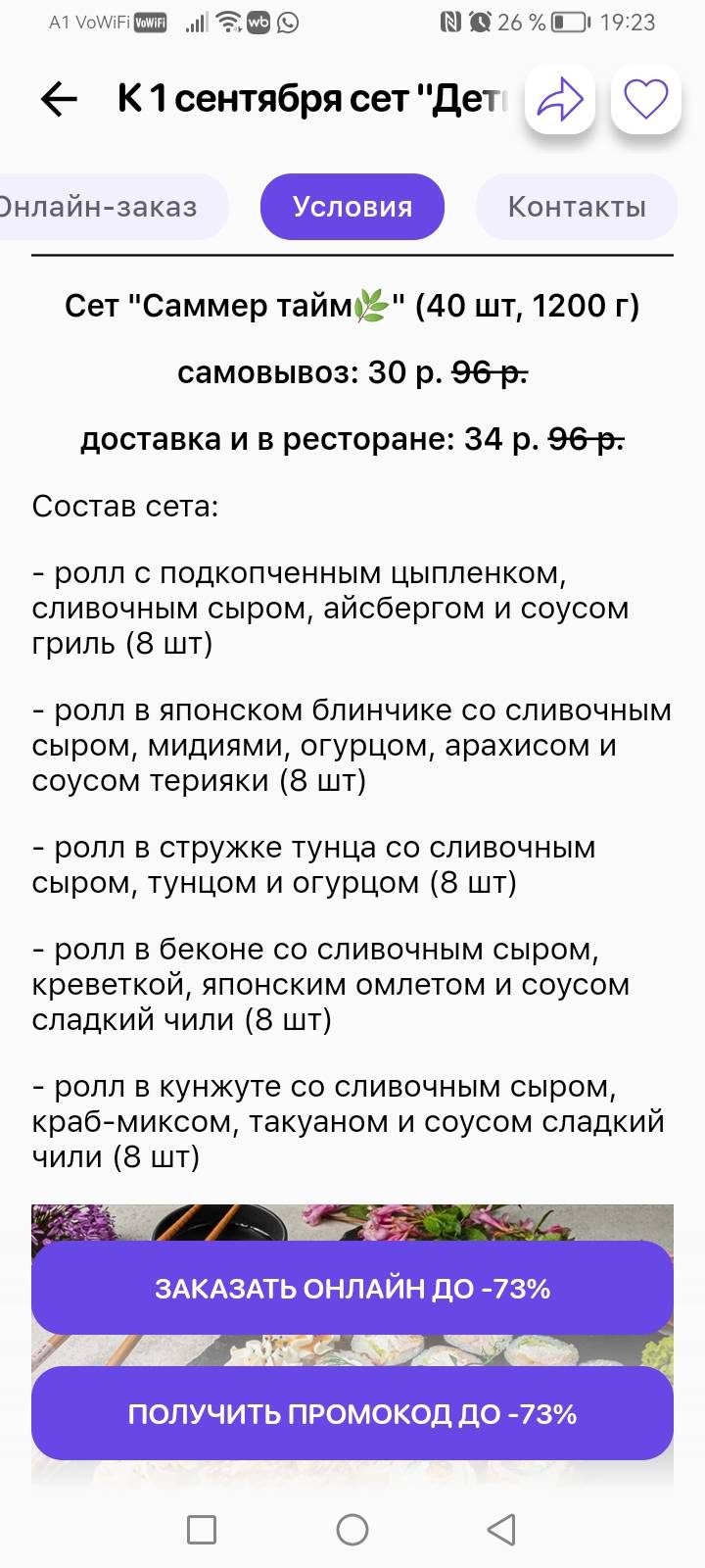 - Промокод дает право на скидку до 60% на суши-сеты от "ART FOOD"
