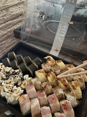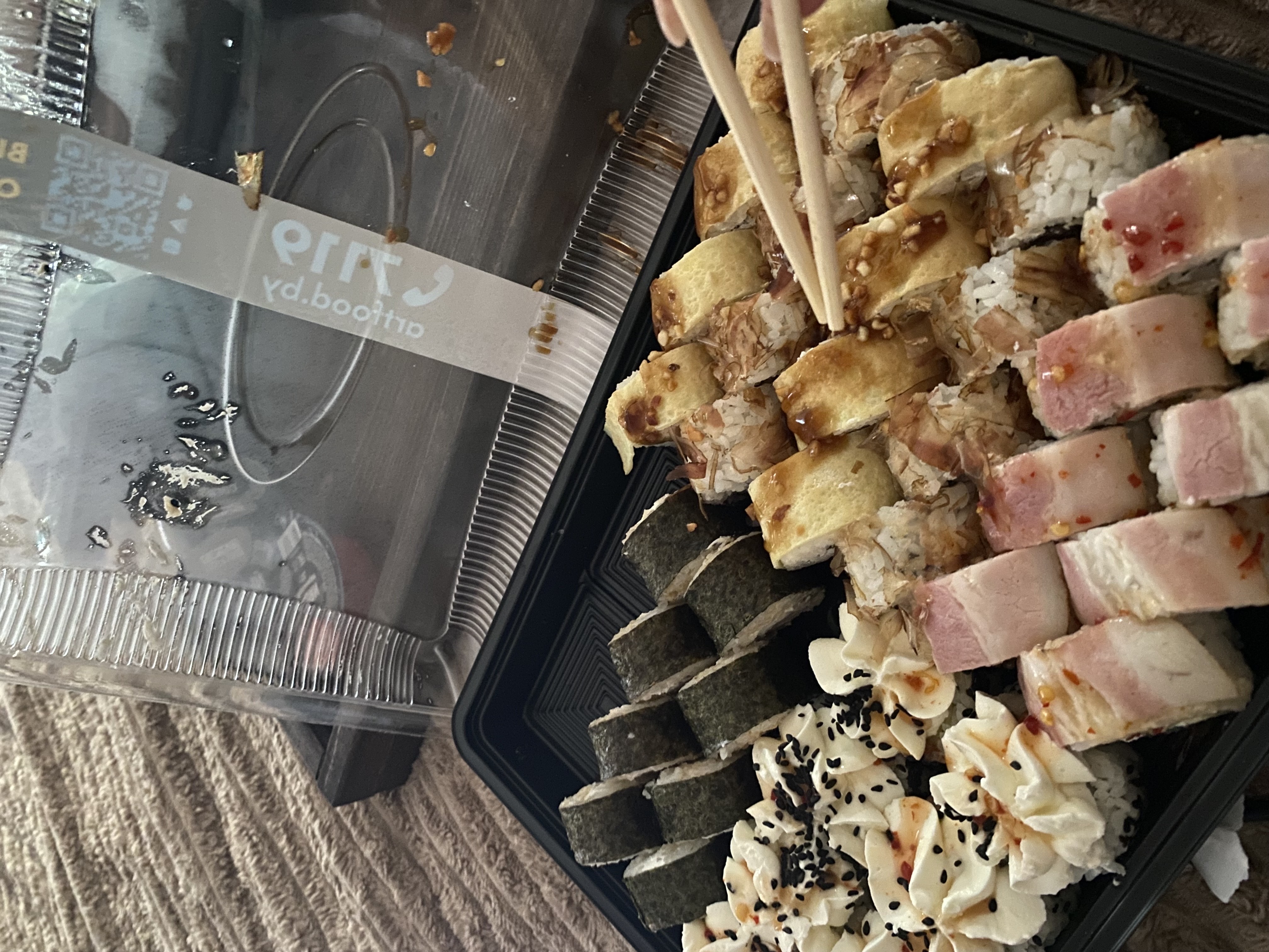 - На 1 суши-сет прилагается не более 4 комплектов палочек