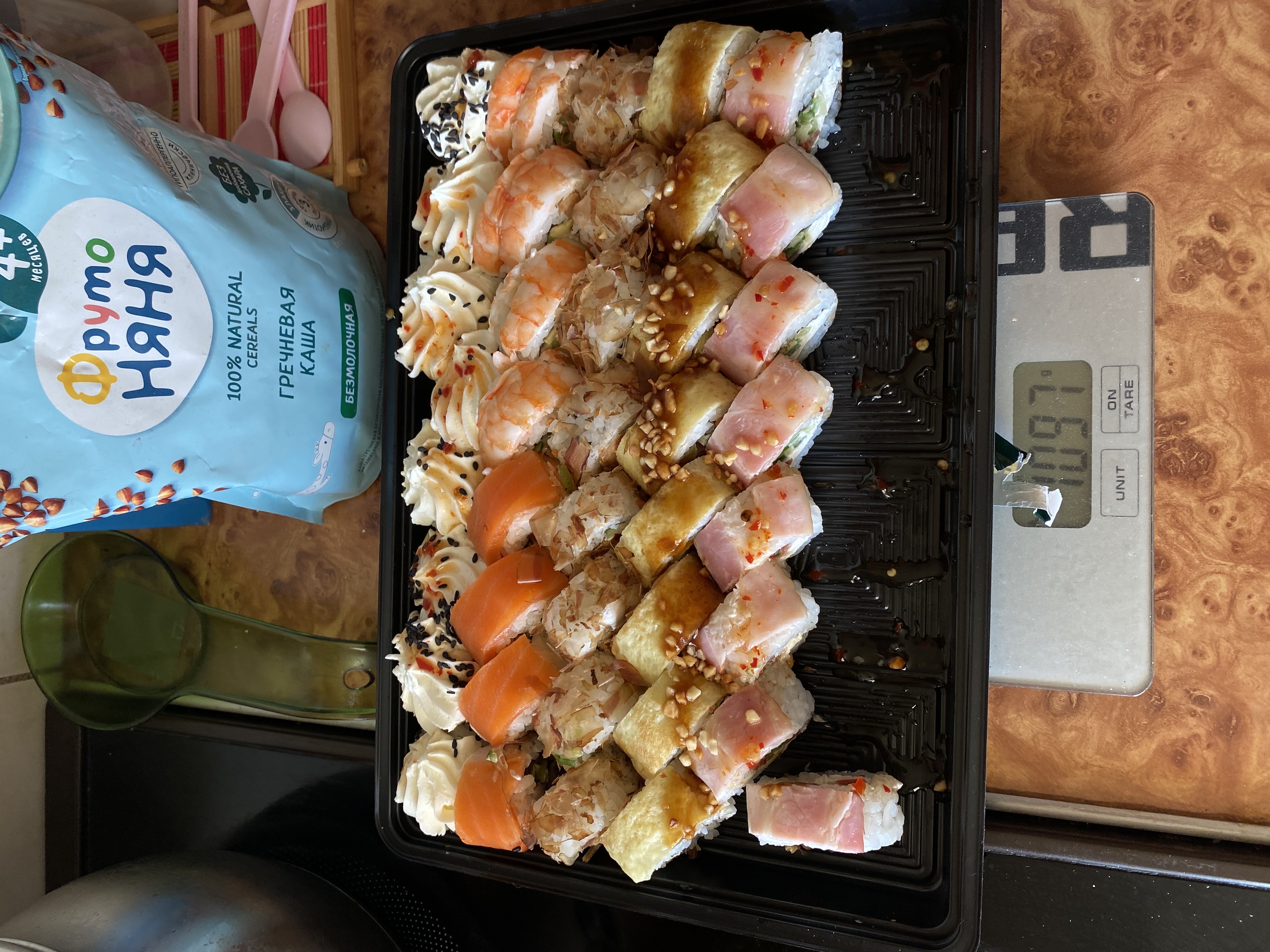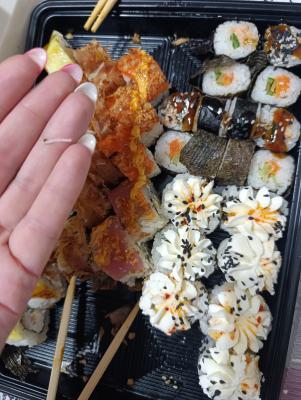 - На 1 суши-сет прилагается не более 4 комплектов палочек