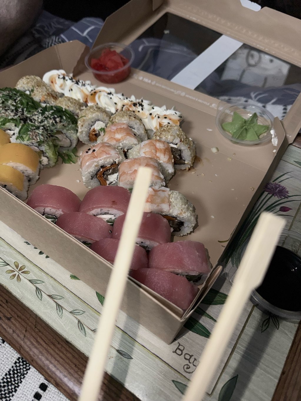 - На 1 суши-сет прилагается не более 4 комплектов палочек