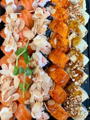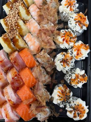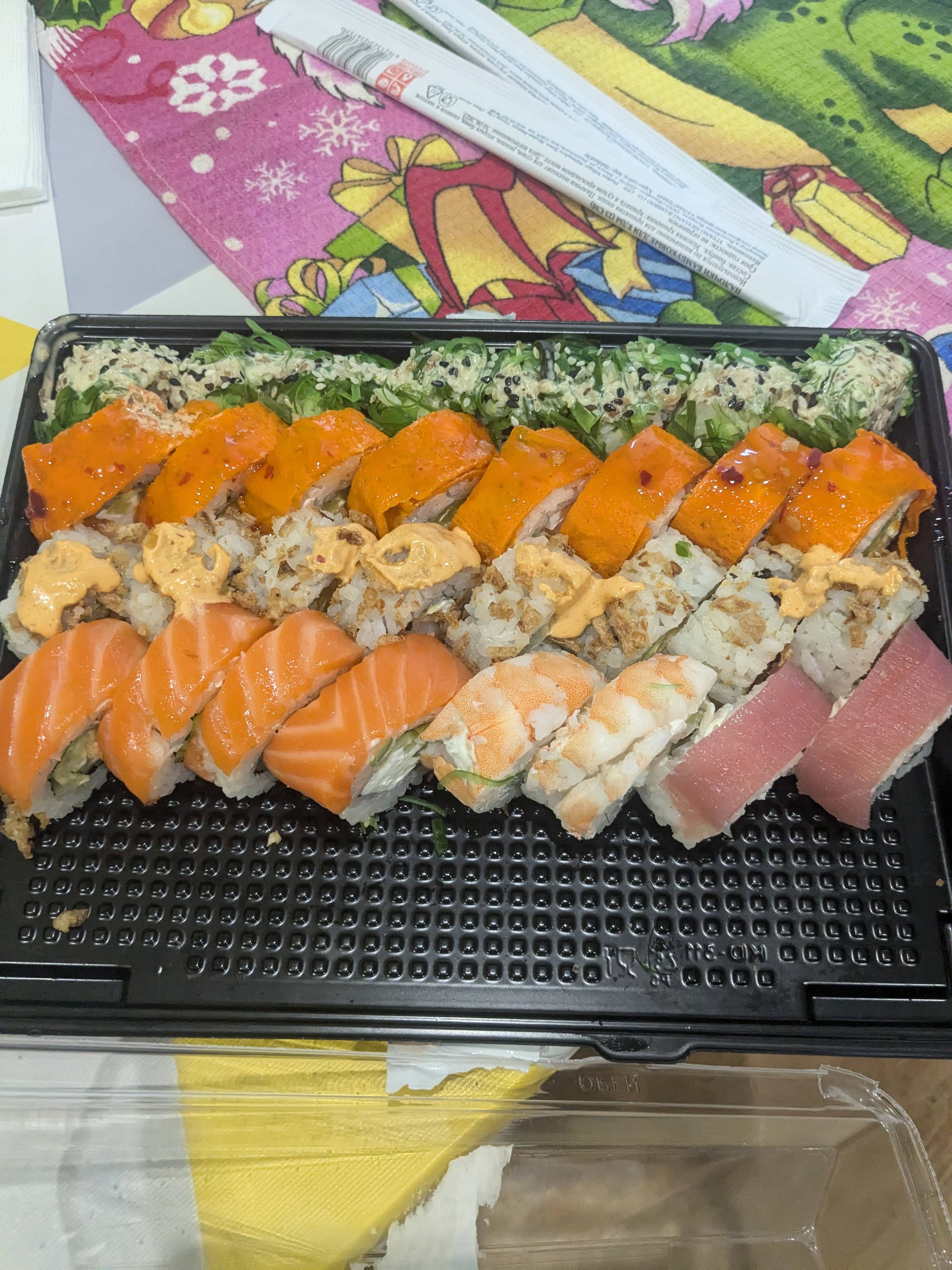 - Внимание! К предзаказу на 31.12 доступны: сет "Новогодний", "Дымный", "Мамины радости", "Макеба", "Ясахи", "Филадельфия", "Каприз", "Игра в кальмара", "Можно всё!", "Мама босс", "Палитра вкуса", "Муж купил", "Биг босс", "Мафия", "Манга", роллы Урамаки, все напитки и гарниры