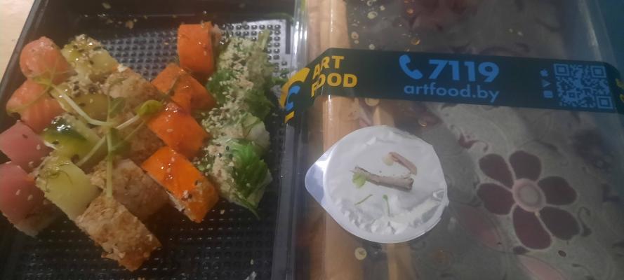 - Промокод дает право на скидку до 60% на суши-сеты от "ART FOOD"