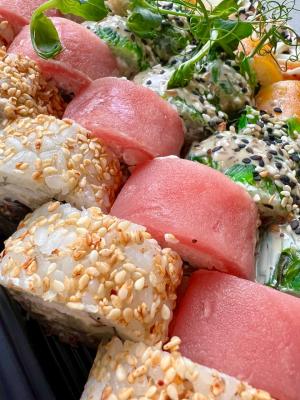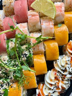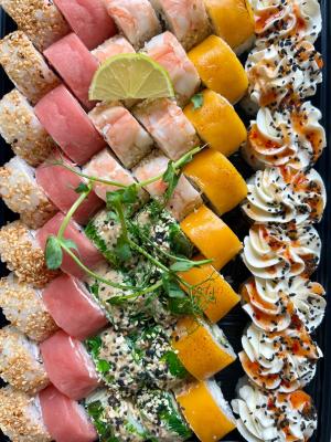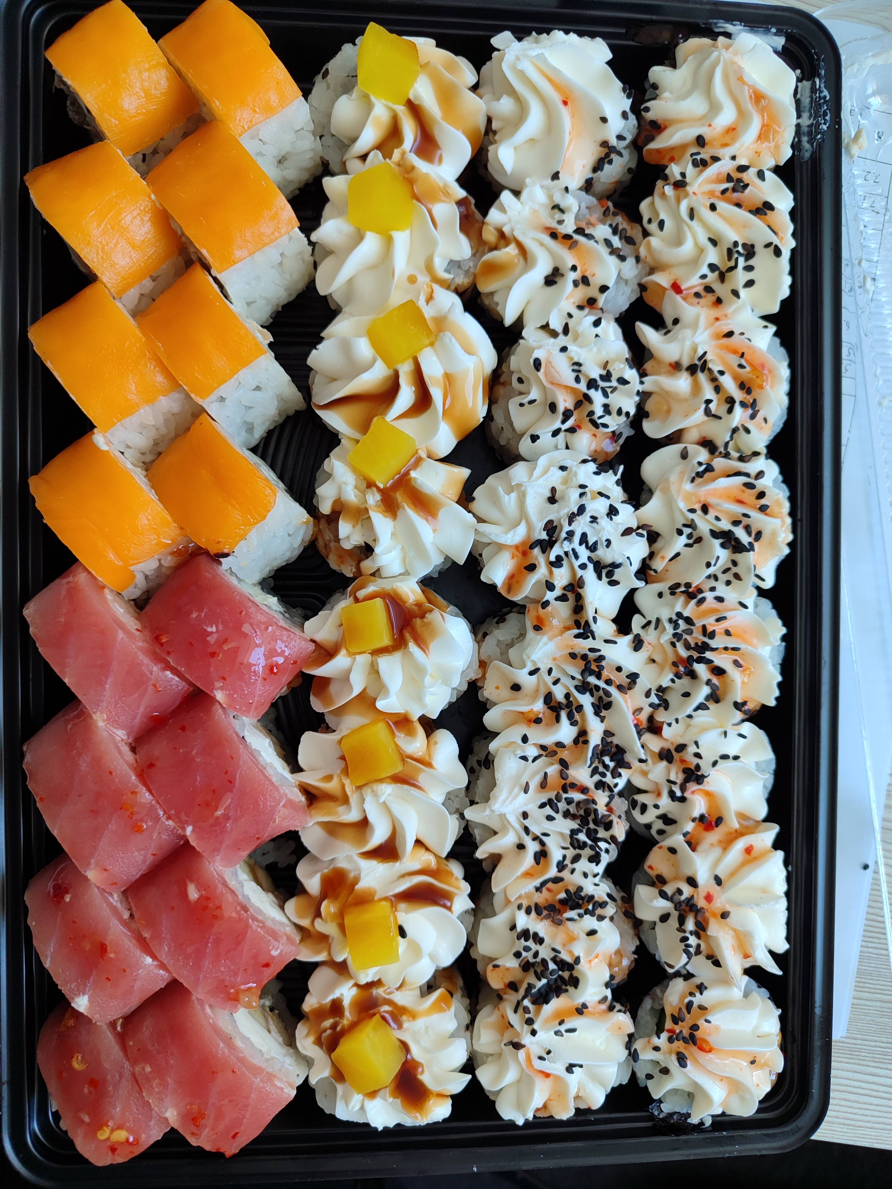 - Внимание! К предзаказу на 31.12 доступны: сет "Новогодний", "Дымный", "Мамины радости", "Макеба", "Ясахи", "Филадельфия", "Каприз", "Игра в кальмара", "Можно всё!", "Мама босс", "Палитра вкуса", "Муж купил", "Биг босс", "Мафия", "Манга", роллы Урамаки, все напитки и гарниры