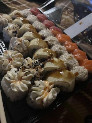 Вкусные суши, на сливках всегда приятные скидки. Много лет берём по этой акции, всё супер вкусно!!!