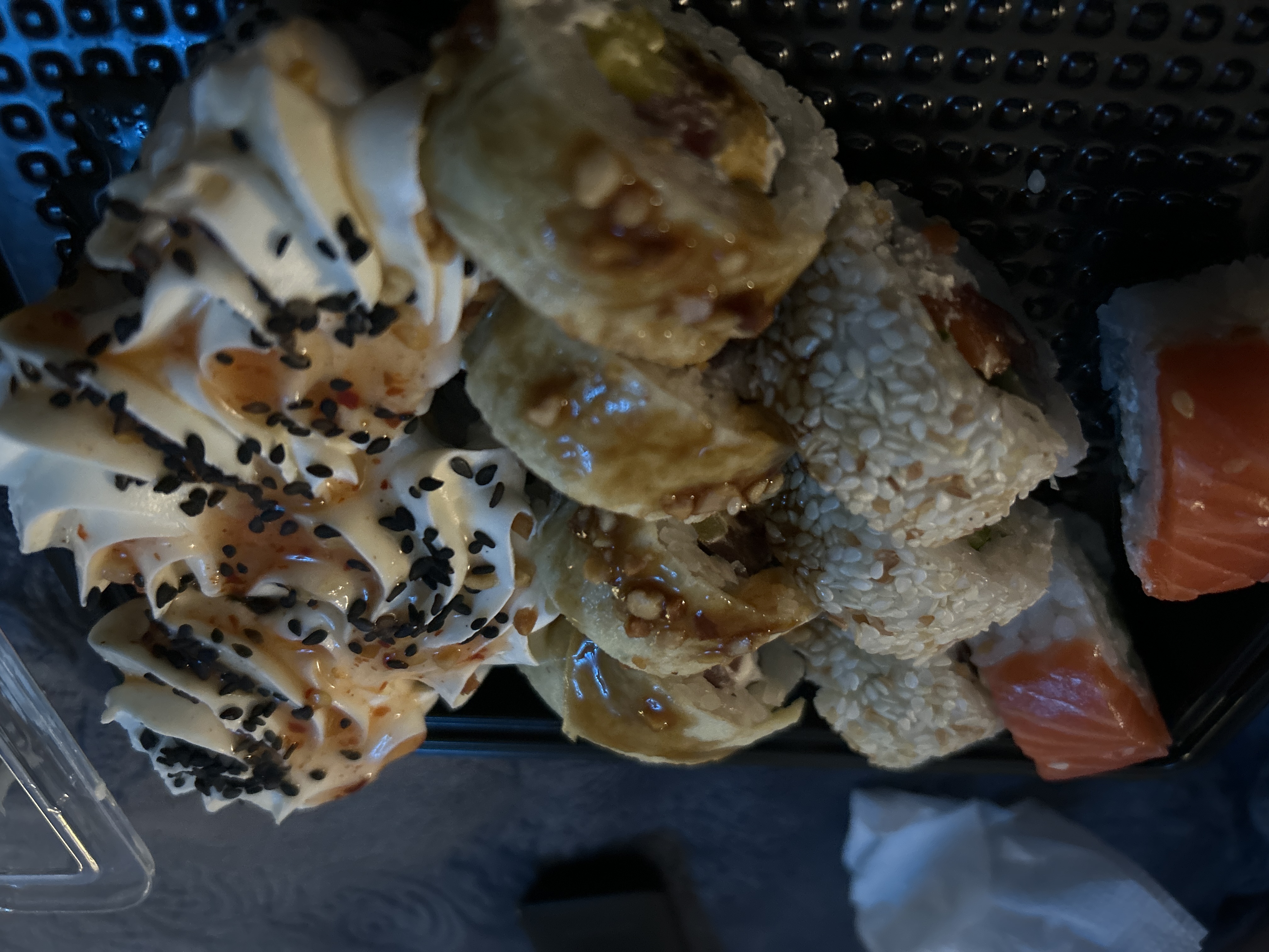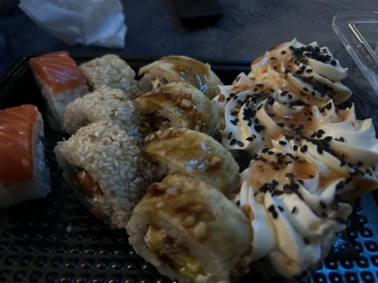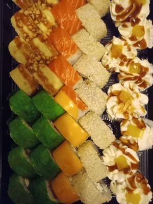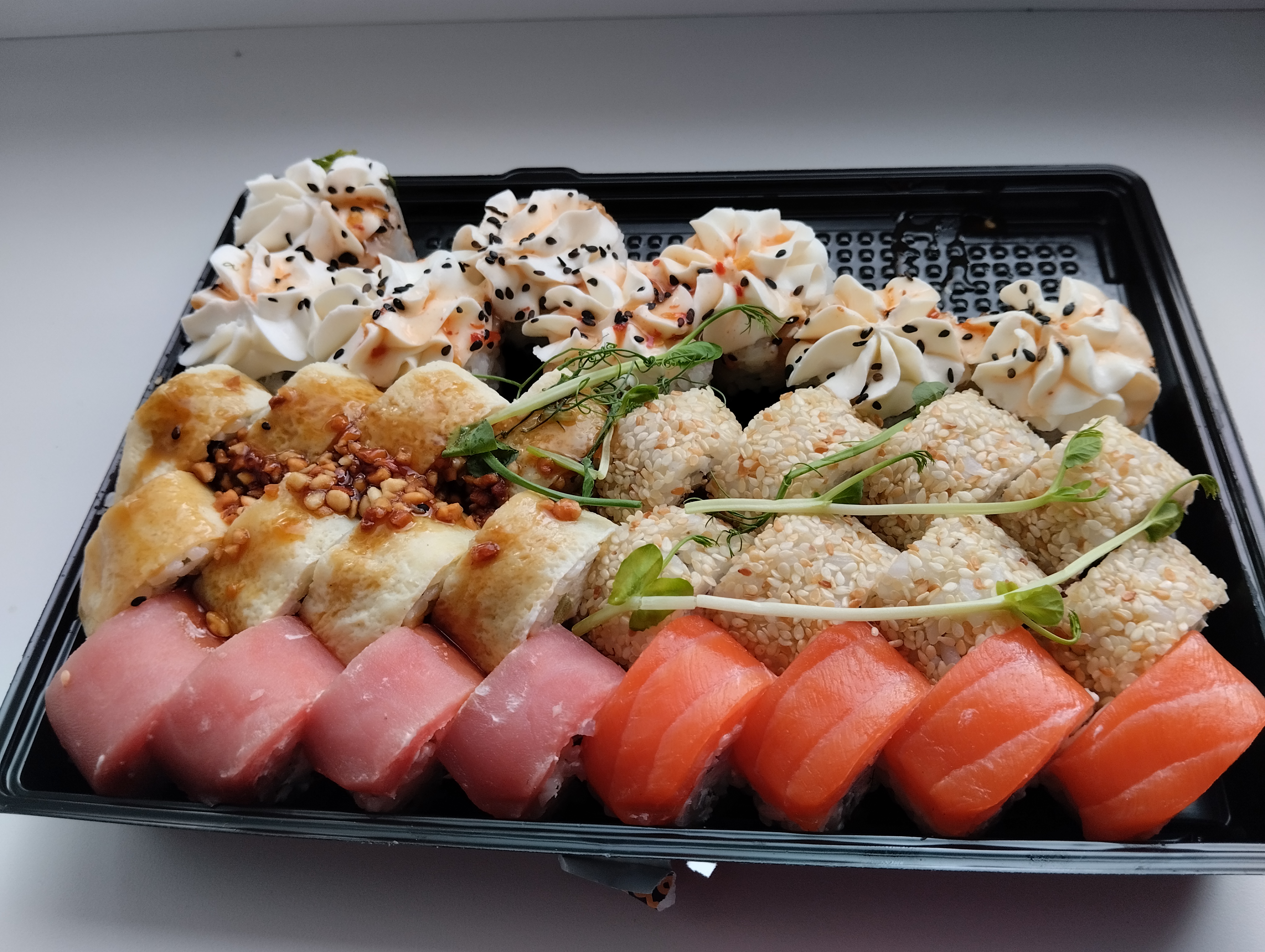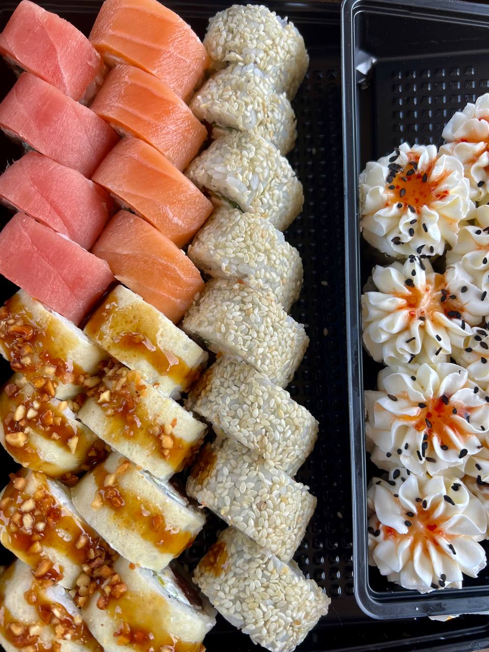 - Внимание! К предзаказу на 31.12 доступны: сет "Новогодний", "Дымный", "Мамины радости", "Макеба", "Ясахи", "Филадельфия", "Каприз", "Игра в кальмара", "Можно всё!", "Мама босс", "Палитра вкуса", "Муж купил", "Биг босс", "Мафия", "Манга", роллы Урамаки, все напитки и гарниры