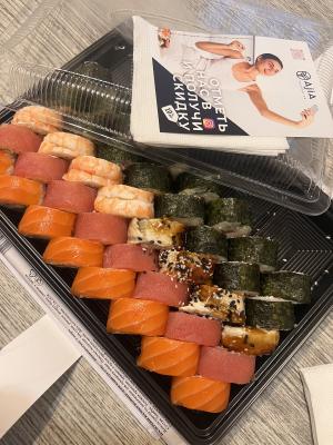 - Промокод дает право на скидку до 65% на суши-сеты от "AjiA"