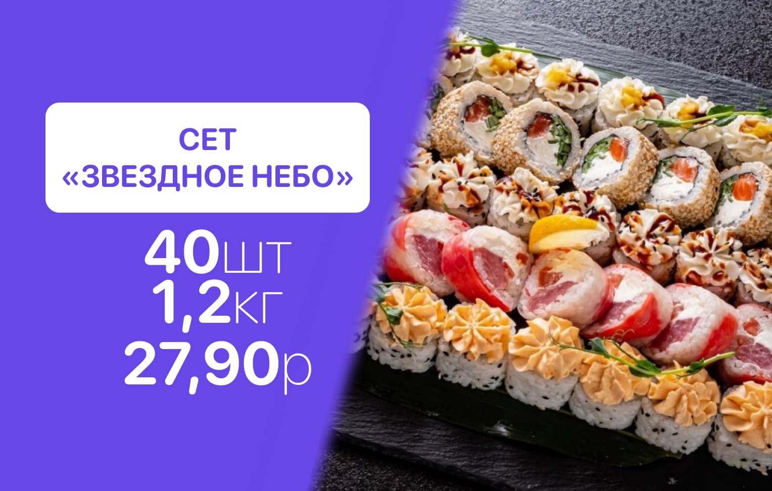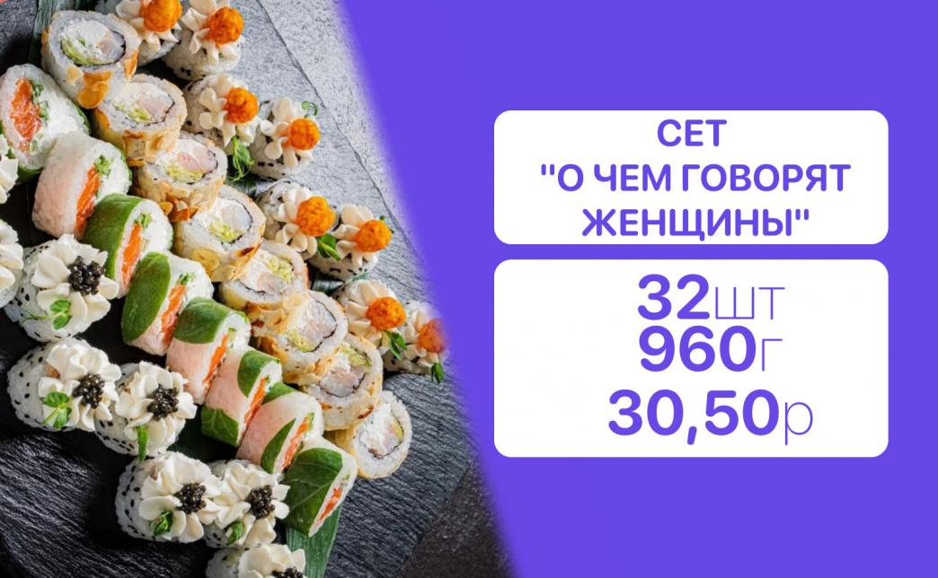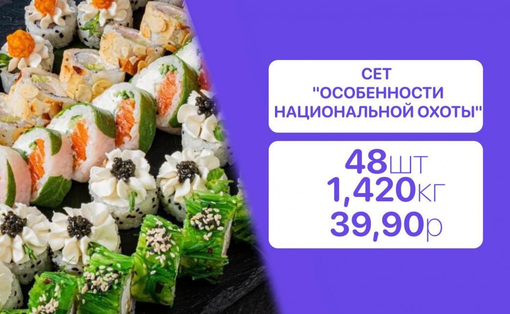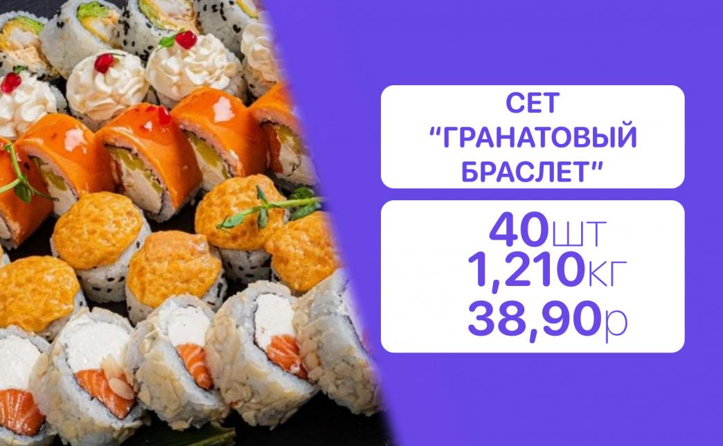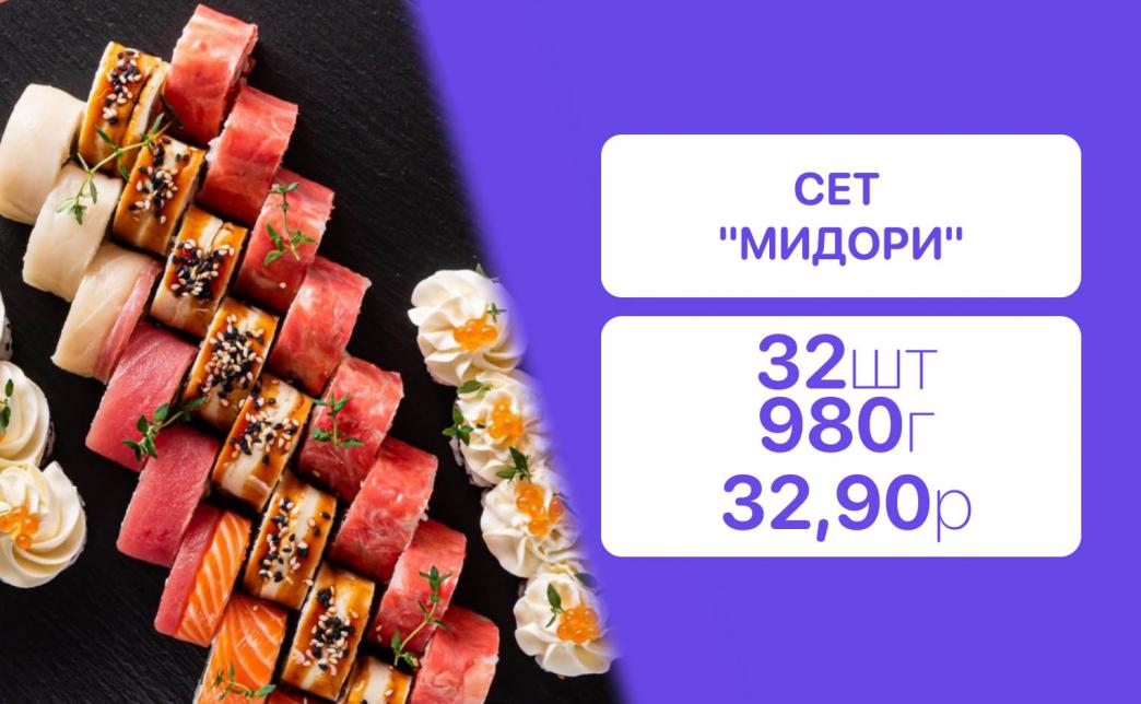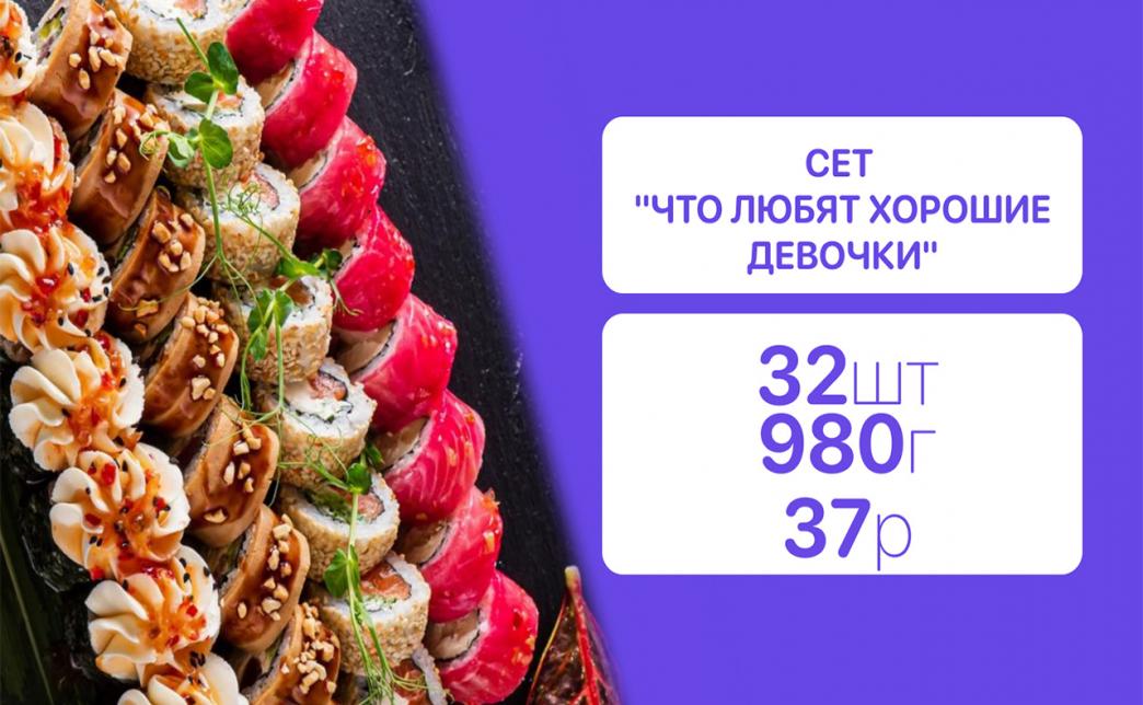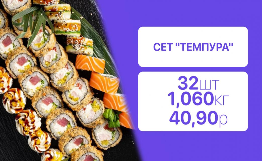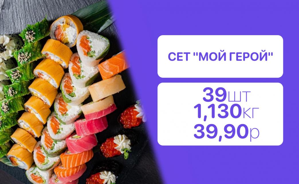 - Стоимость суши-сетов: от 32,90 р. от 58 р.
