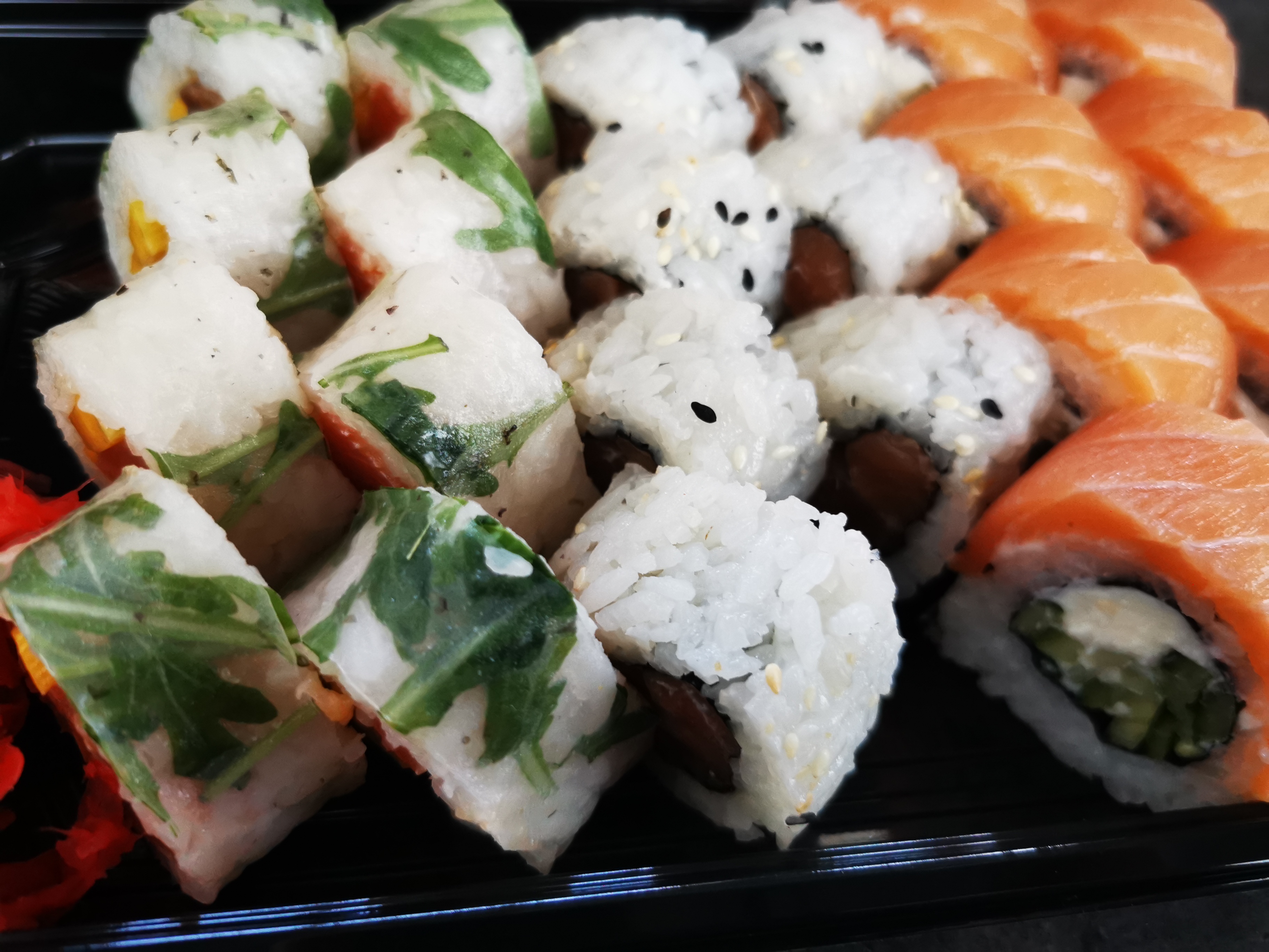 - гарнир: имбирь (25 г), соевый соус (40 мл), васаби (15 г) в подарок!