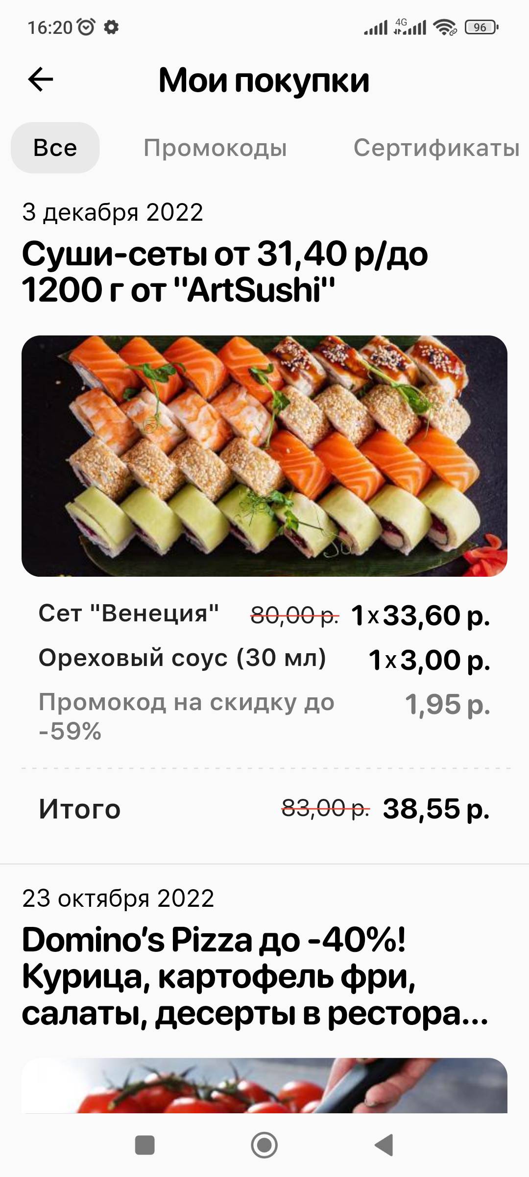 - Промокод дает право на скидку до 67% на суши-сеты от "ArtSushi"